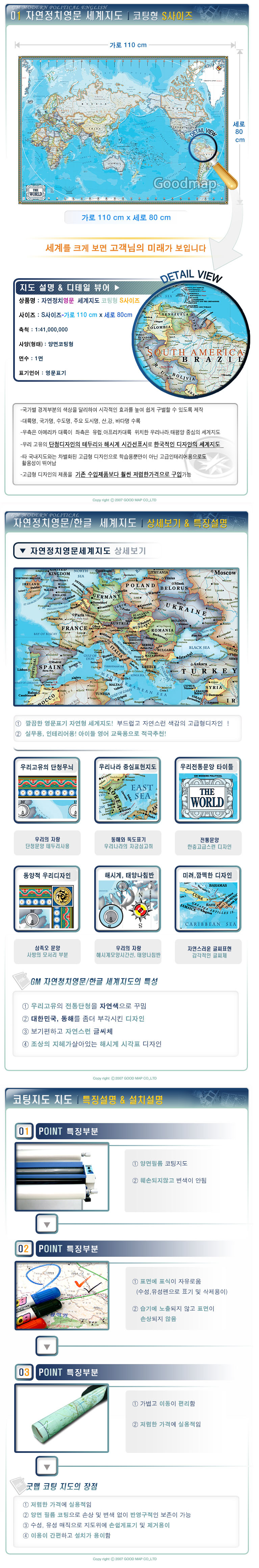 [좋은지도]세계지도 GM 자연지세 한글 코팅 S사이즈