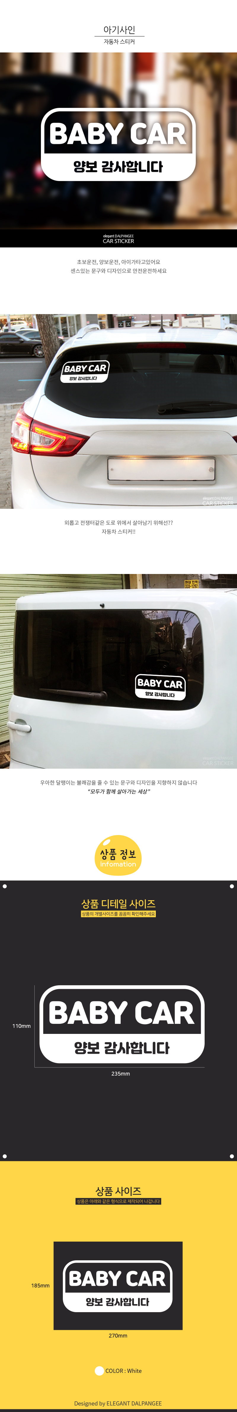 아기가타고있어요 자동차 스티커 아이사인