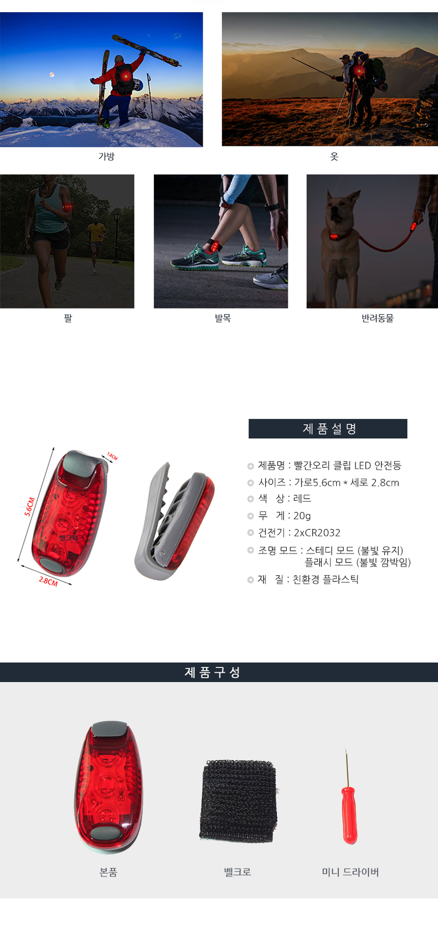 품명 및 모델명 클립 LED 자전거 안전등 라이트