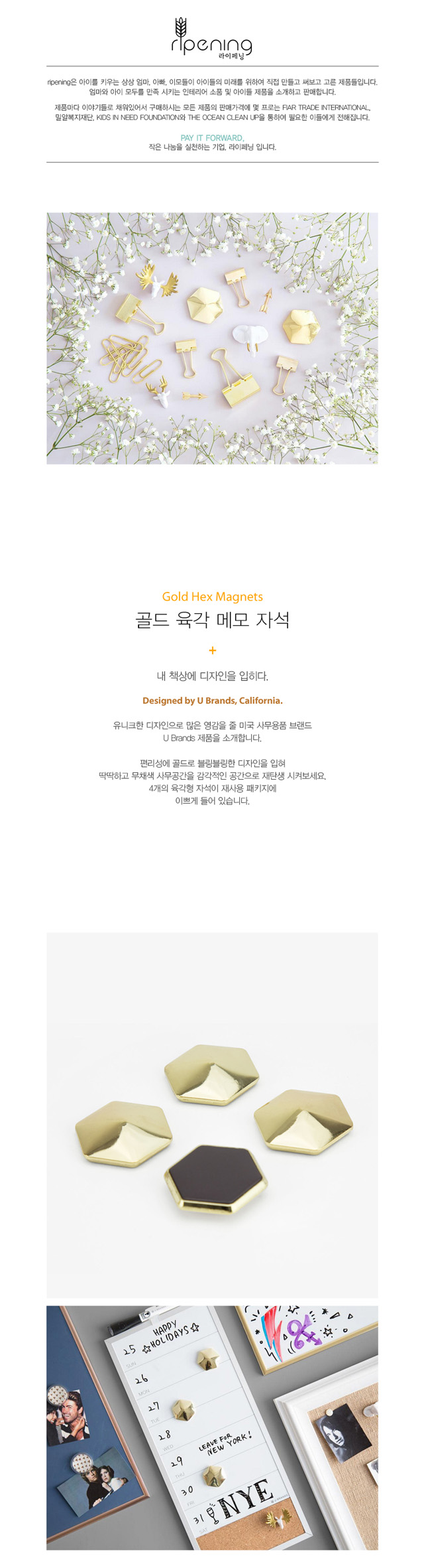 품명 및 모델명 골드 육각 메모 자석