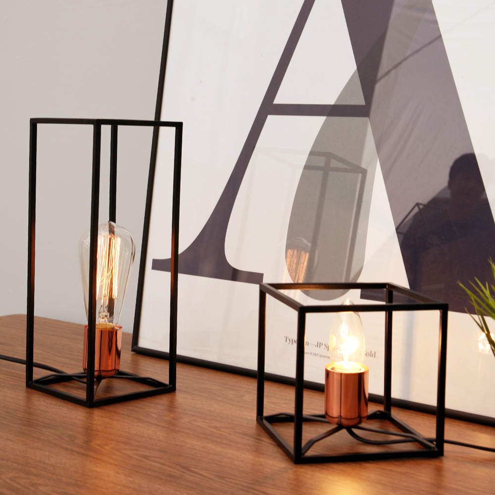사각 프레임 안에 전구가 노출되어 있는 디자인으로