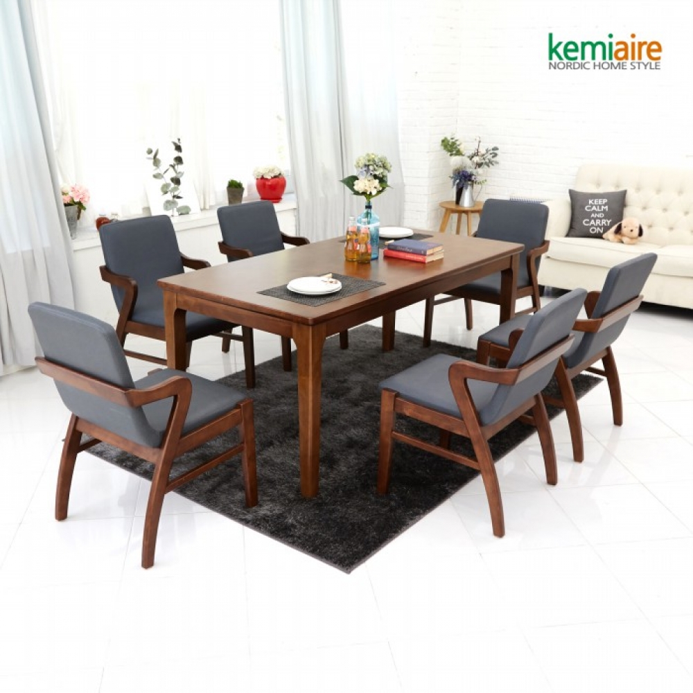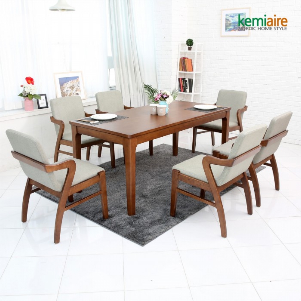 케미에르 고스트 6인용 원목식탁SET(의자형) KHD-622