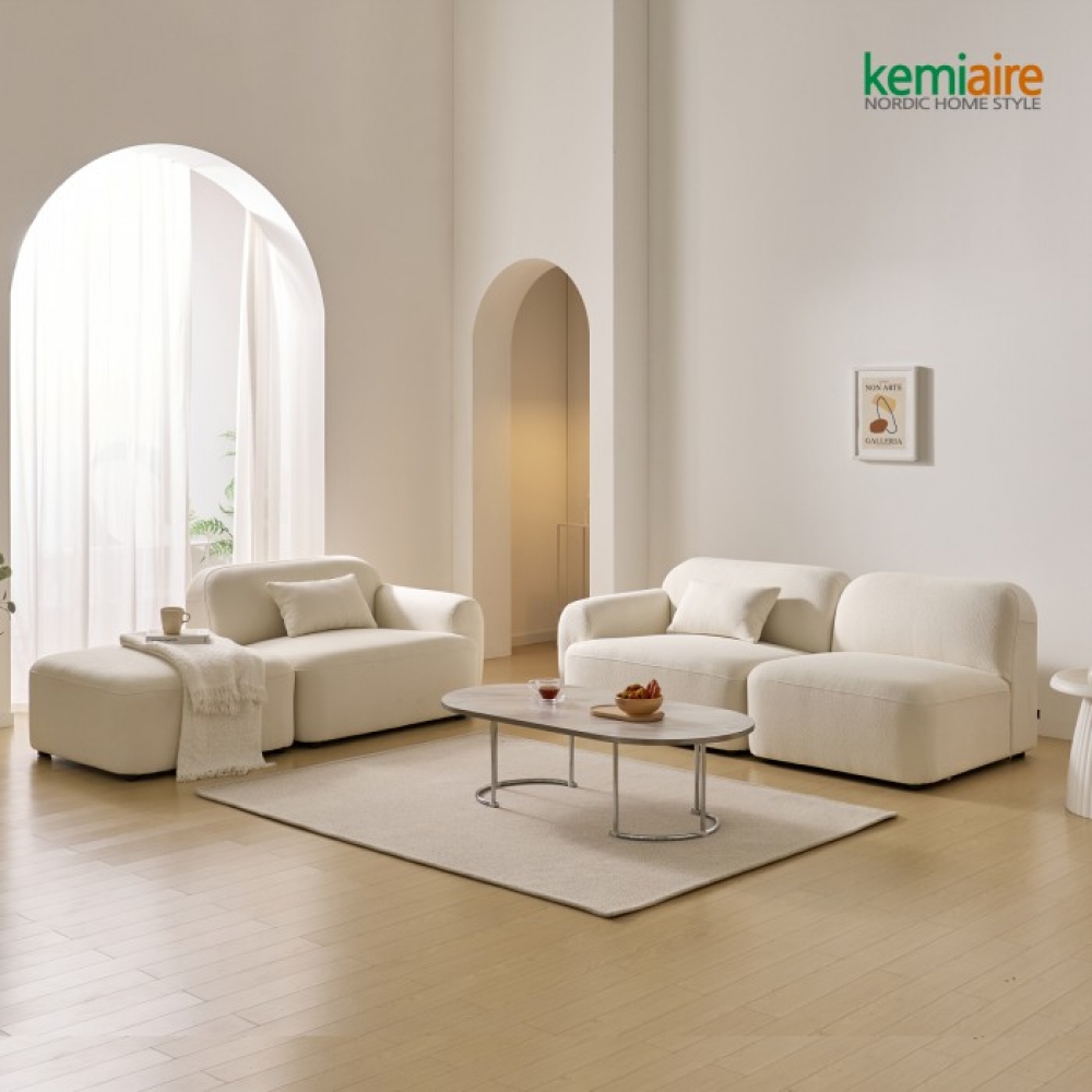 케미에르 레브레아 부클레원단 4인 패브릭쇼파+스툴
