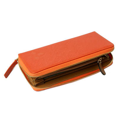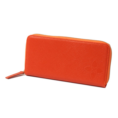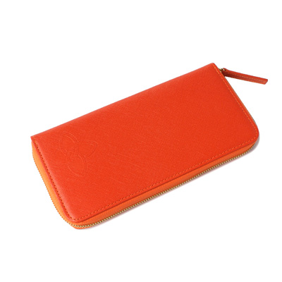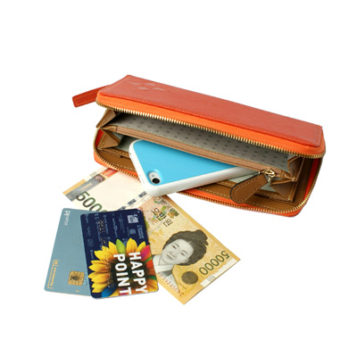 캐러티 수제 여성용 지퍼장지갑 오렌지 코너로고