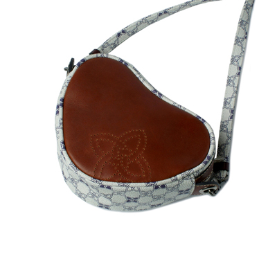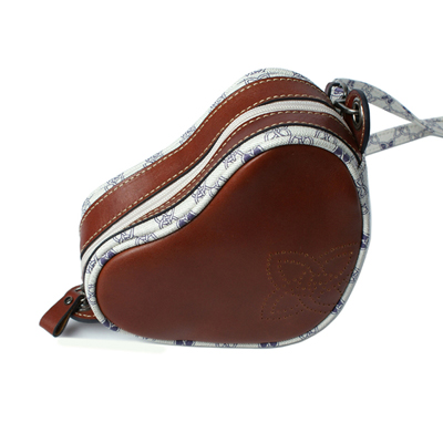 캐러티 수제 크로스백 하트 화이트 브라운