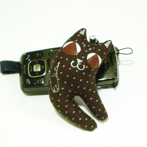 고추 처럼(^^;) 휘어져 있는 모양의 통통한 유연고양이 핸드폰줄입니다.