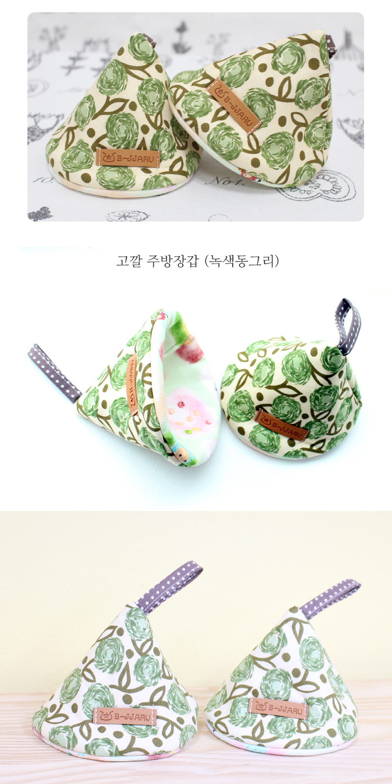 고깔 주방장갑 (녹색동그리)