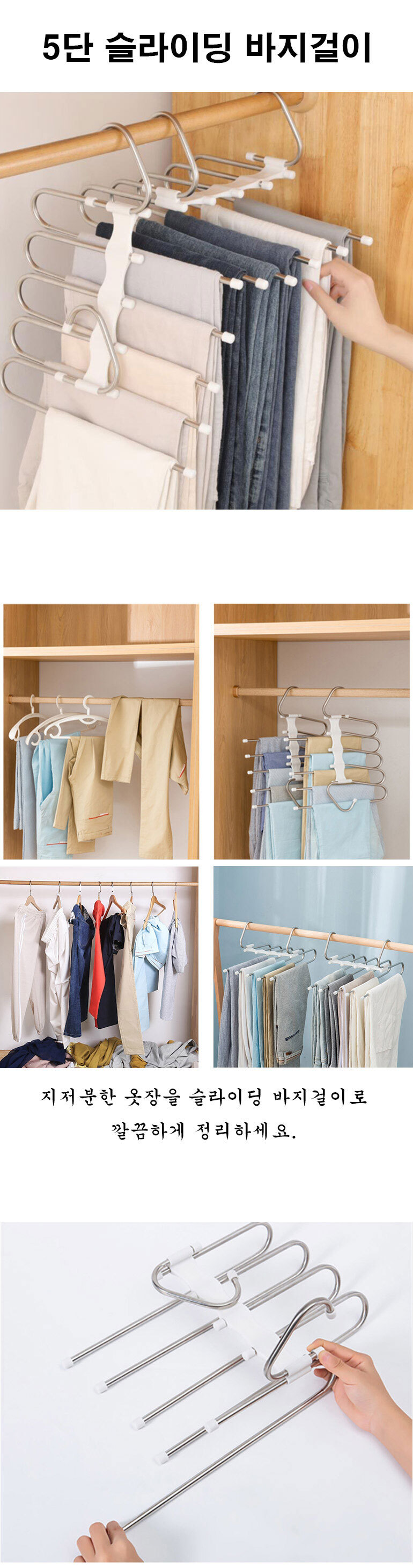 멀티 5단 슬리이딩 접이식 옷걸이 옷장정리
