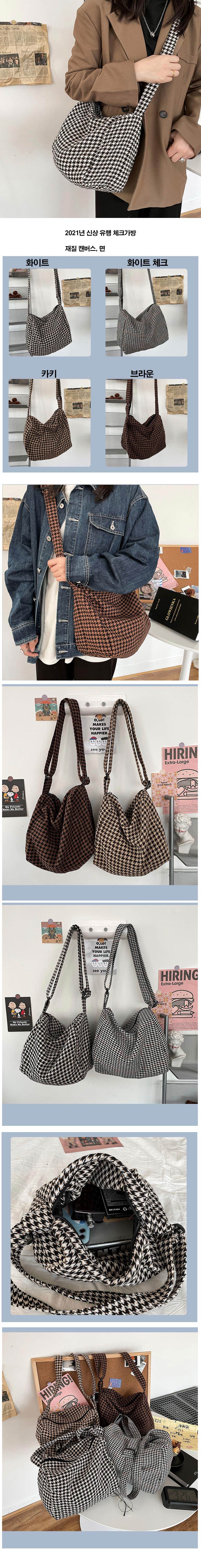 체크 캔버스 재질 포인트 직장인 데일리 코디가방