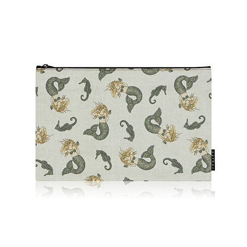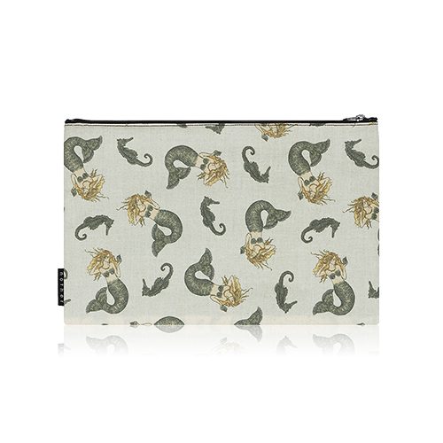 This pouch features a vintage style mermaid and sea horse on a sand color backgrond.