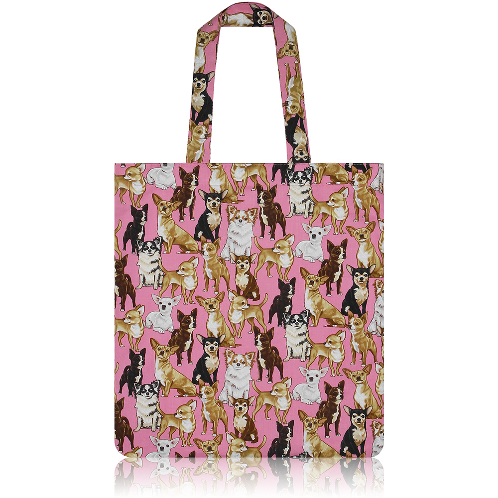 Cutest Chihuahuas print on cotton fabric. Twin grab handles & Inner pocket.