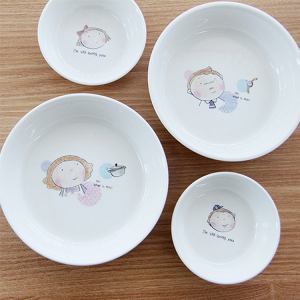 베이지브라운 유리 접시 캐릭터 주방 인테리어 소품
