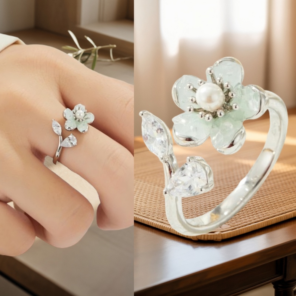 여성 3color 크리스탈 플라워 오픈 링 반지
