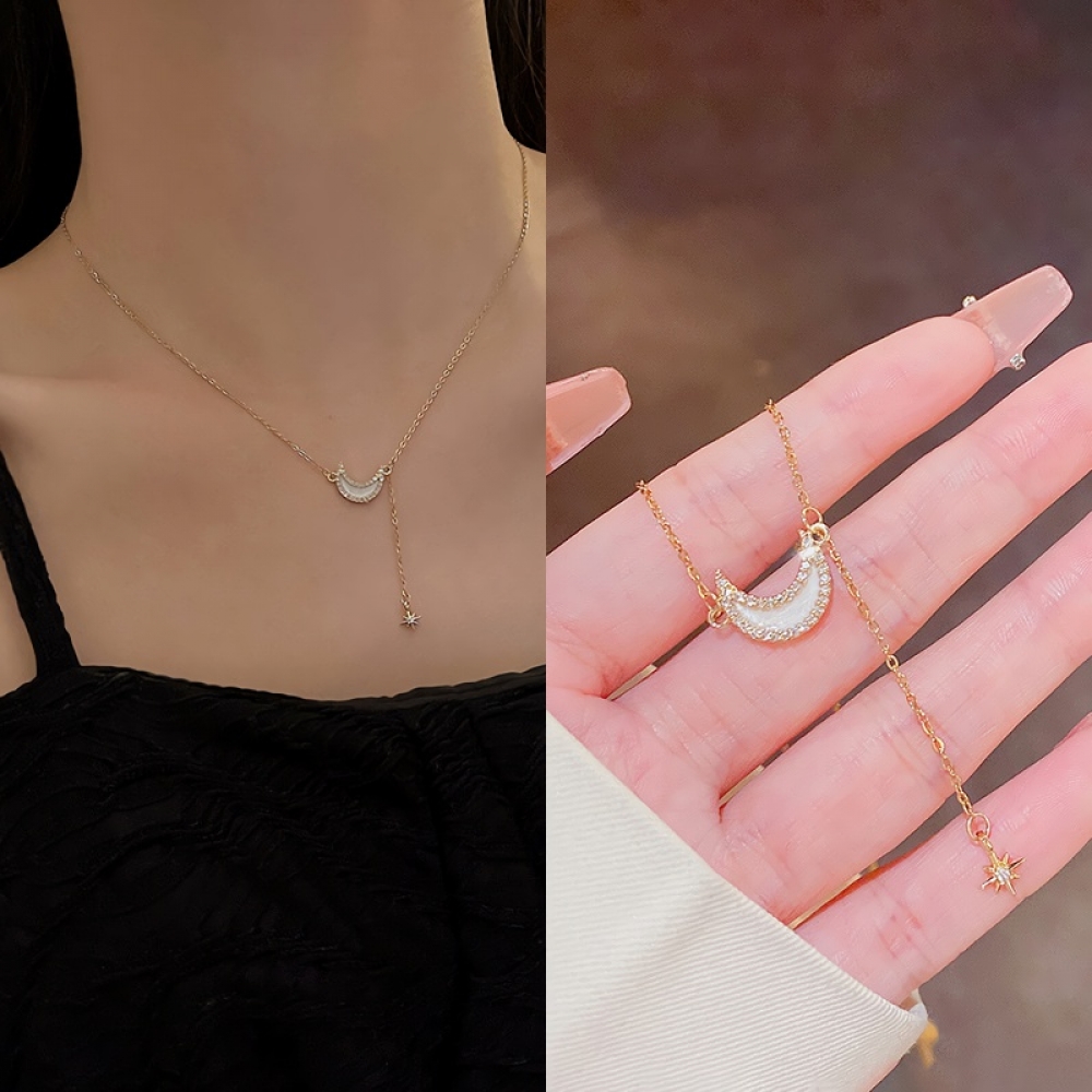 여성 달 문 큐빅 드롭 심플 데일리 목걸이
