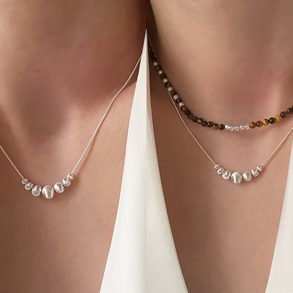 여성 s925 실버 지퍼 볼드 볼 체인 목걸이