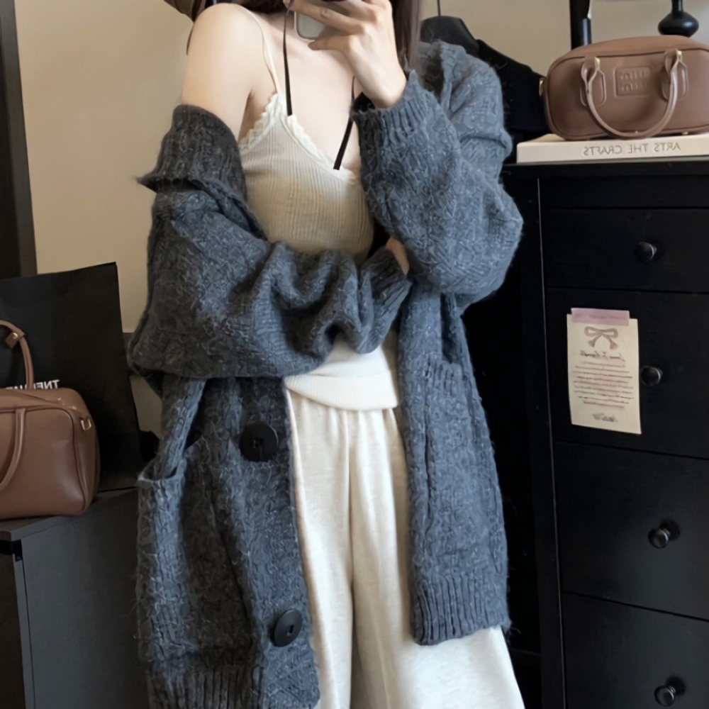 여성 가을 겨울 루즈핏 후드 니트 가디건
