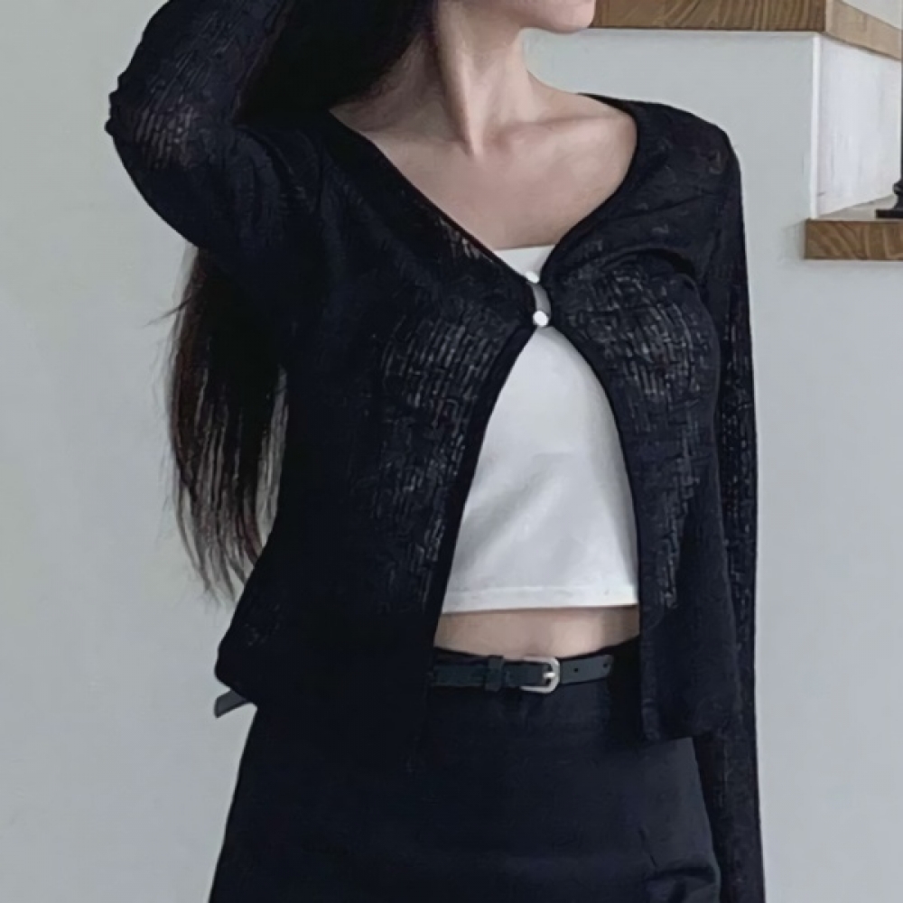 (대여) 스위트 아이보리 블랙 단추 여자 가디건 교복