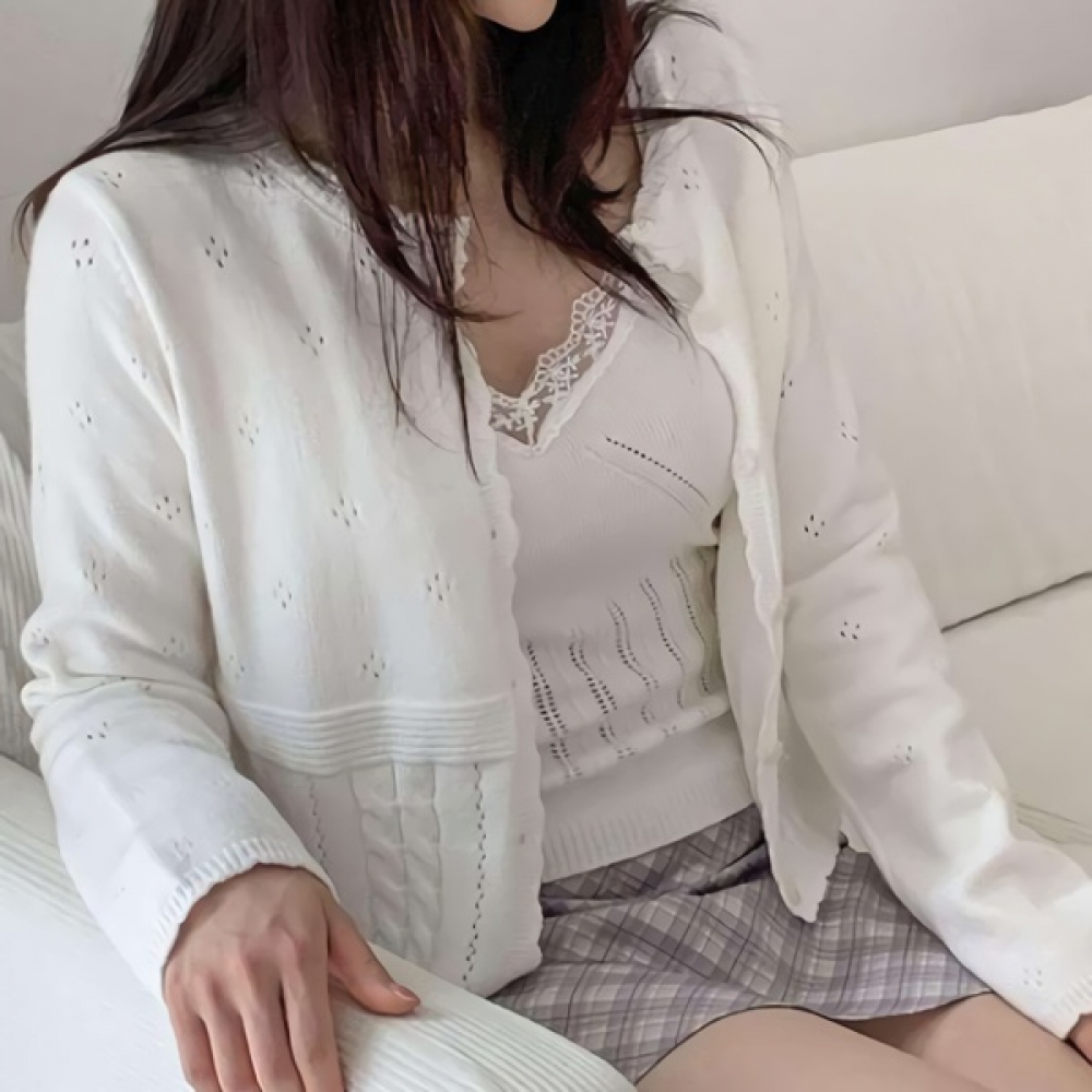 (대여) 스위트 아이보리 블랙 단추 여자 가디건 교복