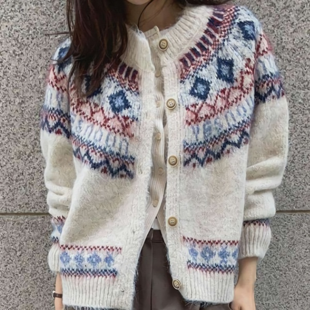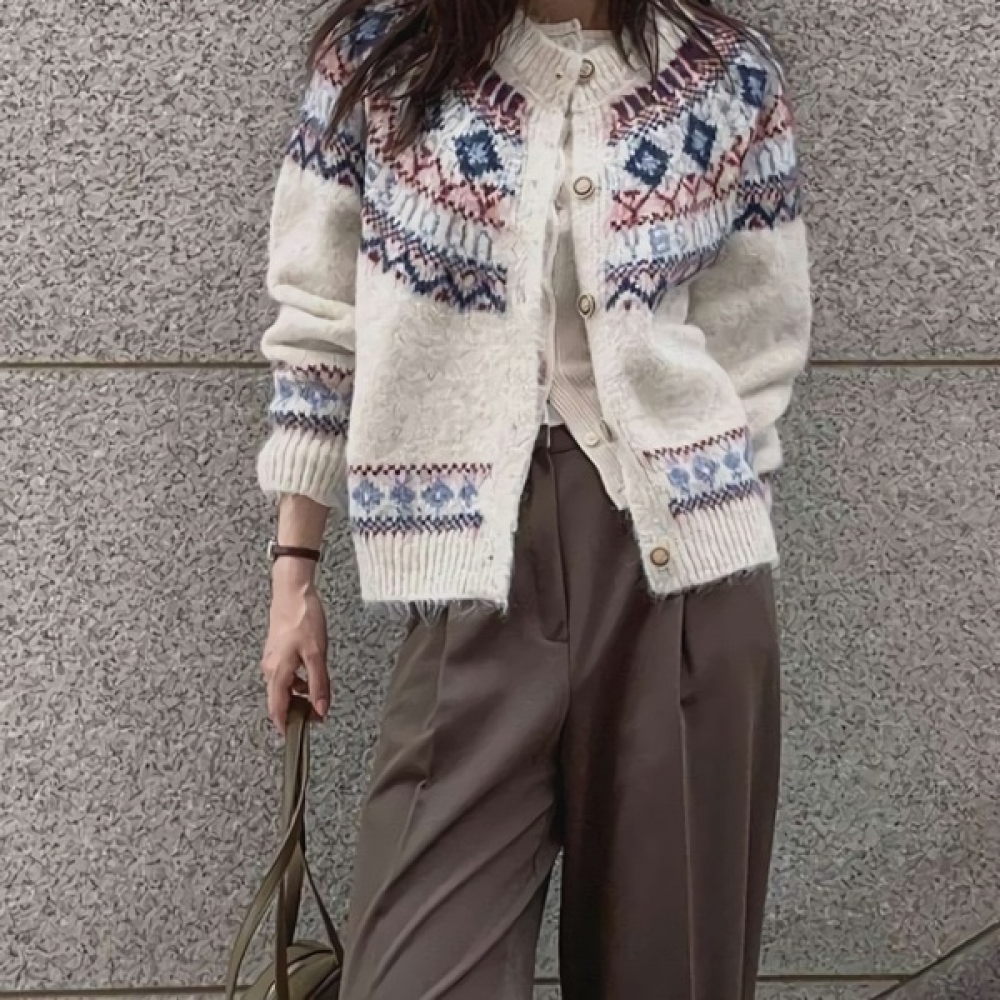 여성 노르딕 루즈핏 쟈가드 울 니트 가디건