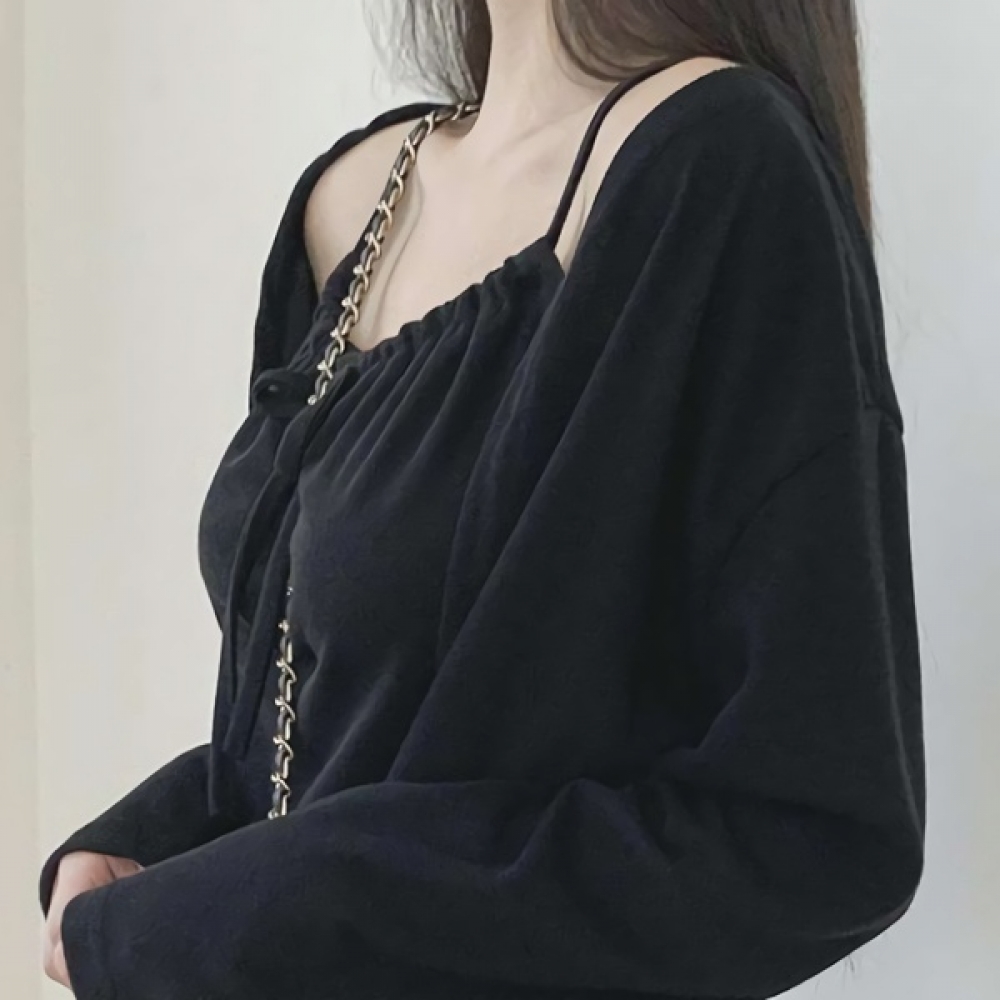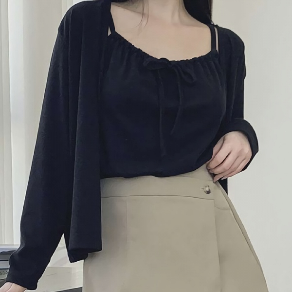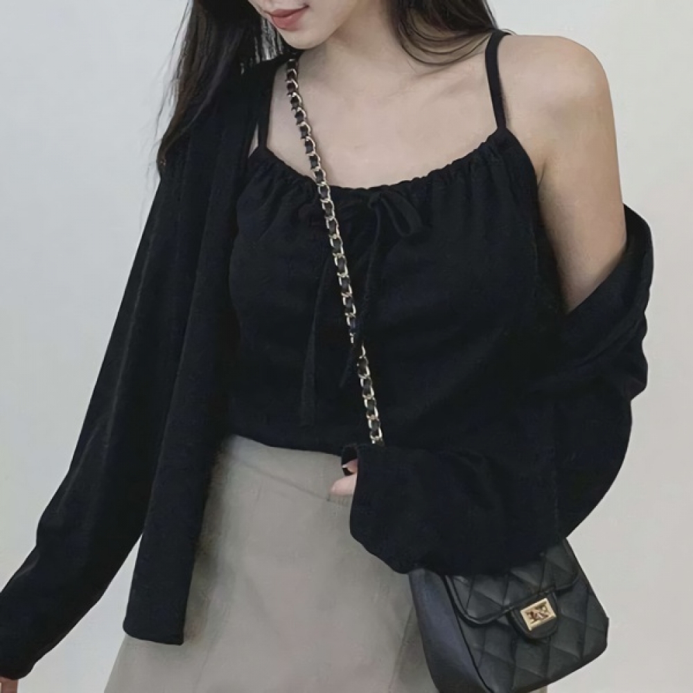 여성 셔링 스트링 크롭 나시 가디건 세트