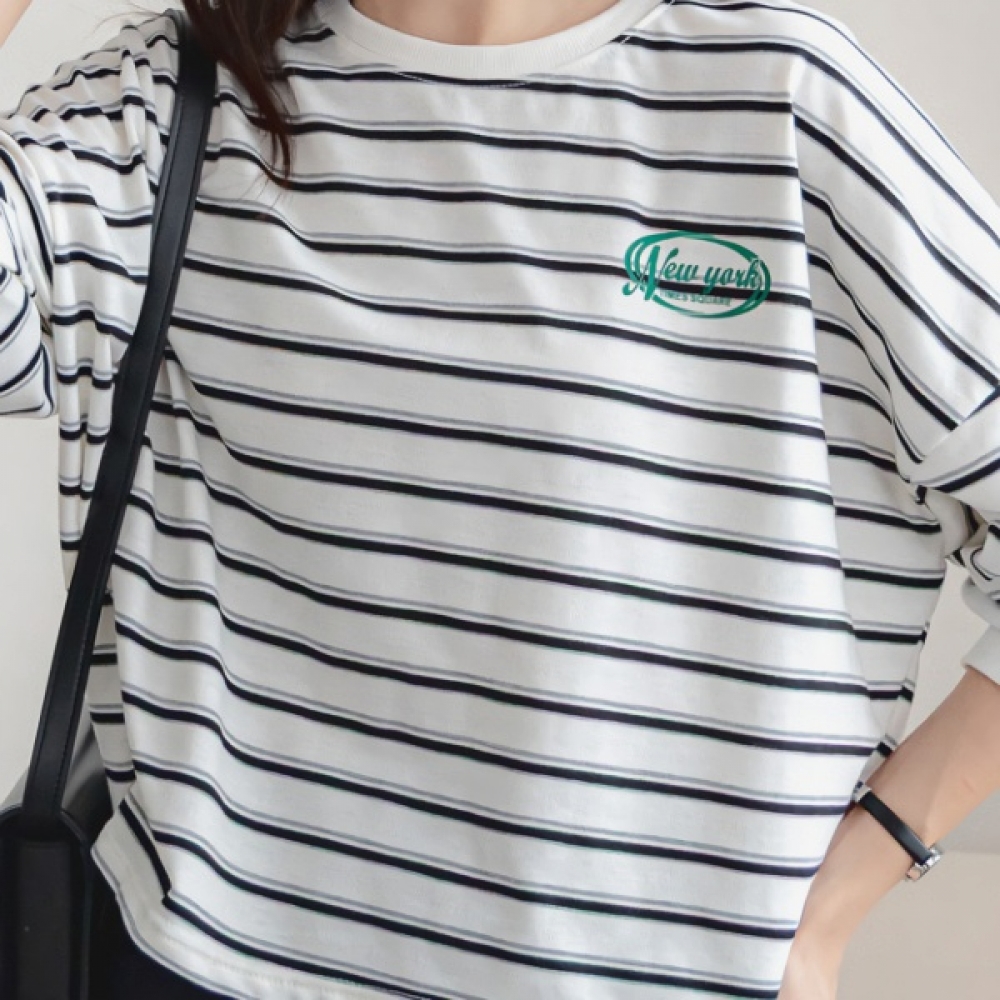 뉴욕 스트라이프 라운드 소매 시보리 티셔츠