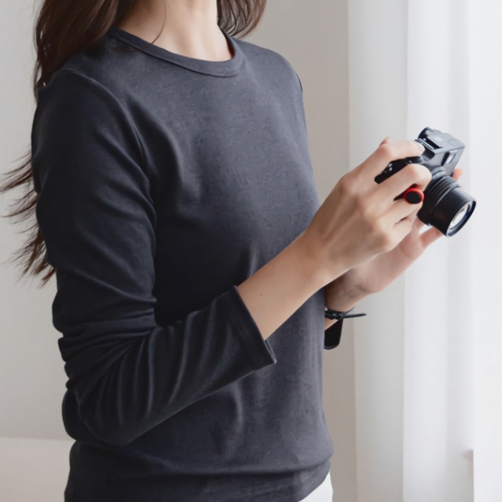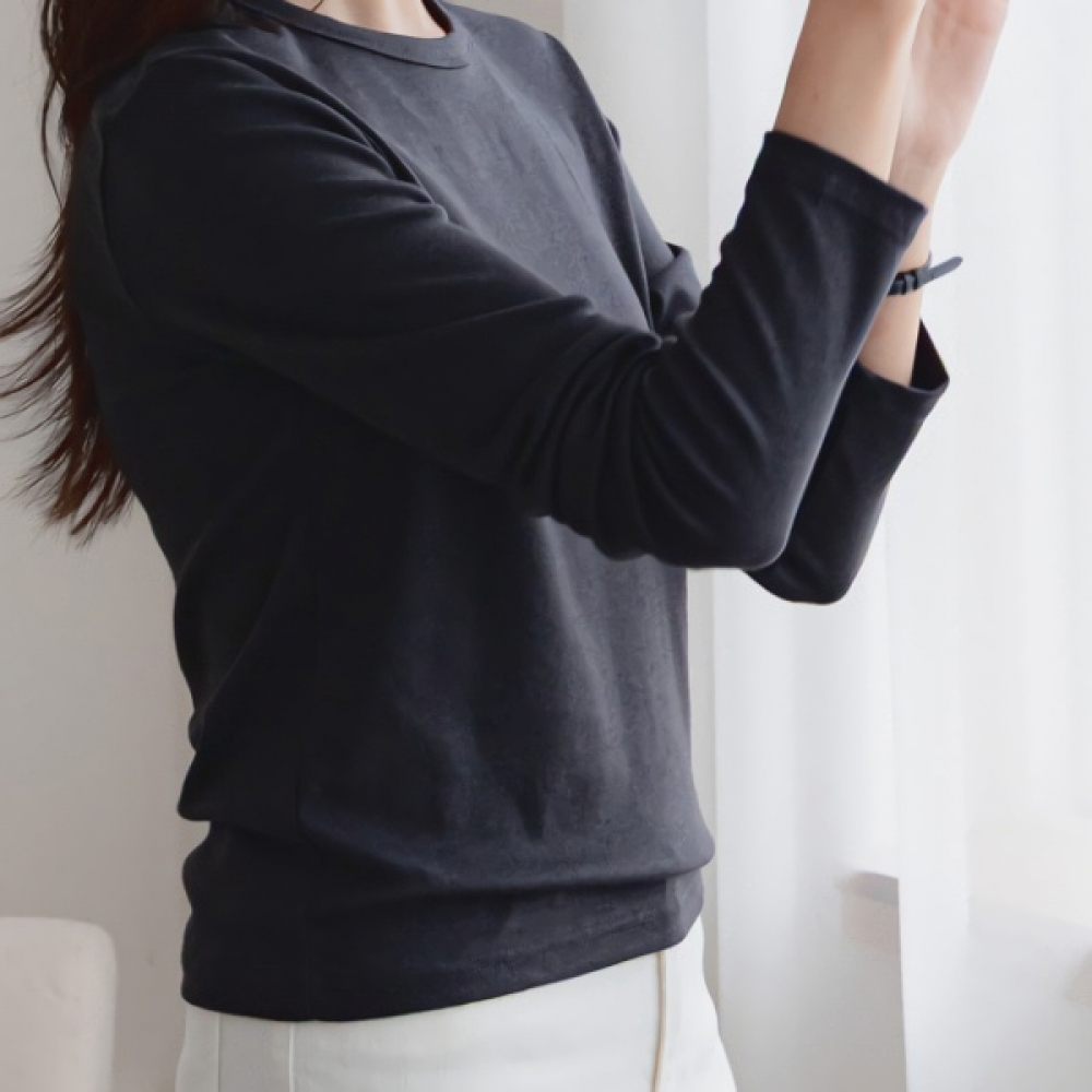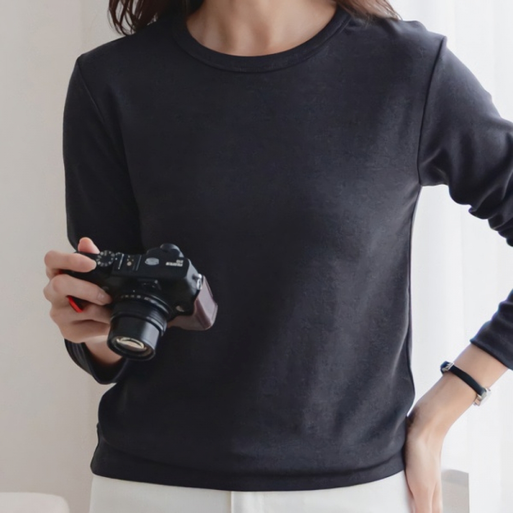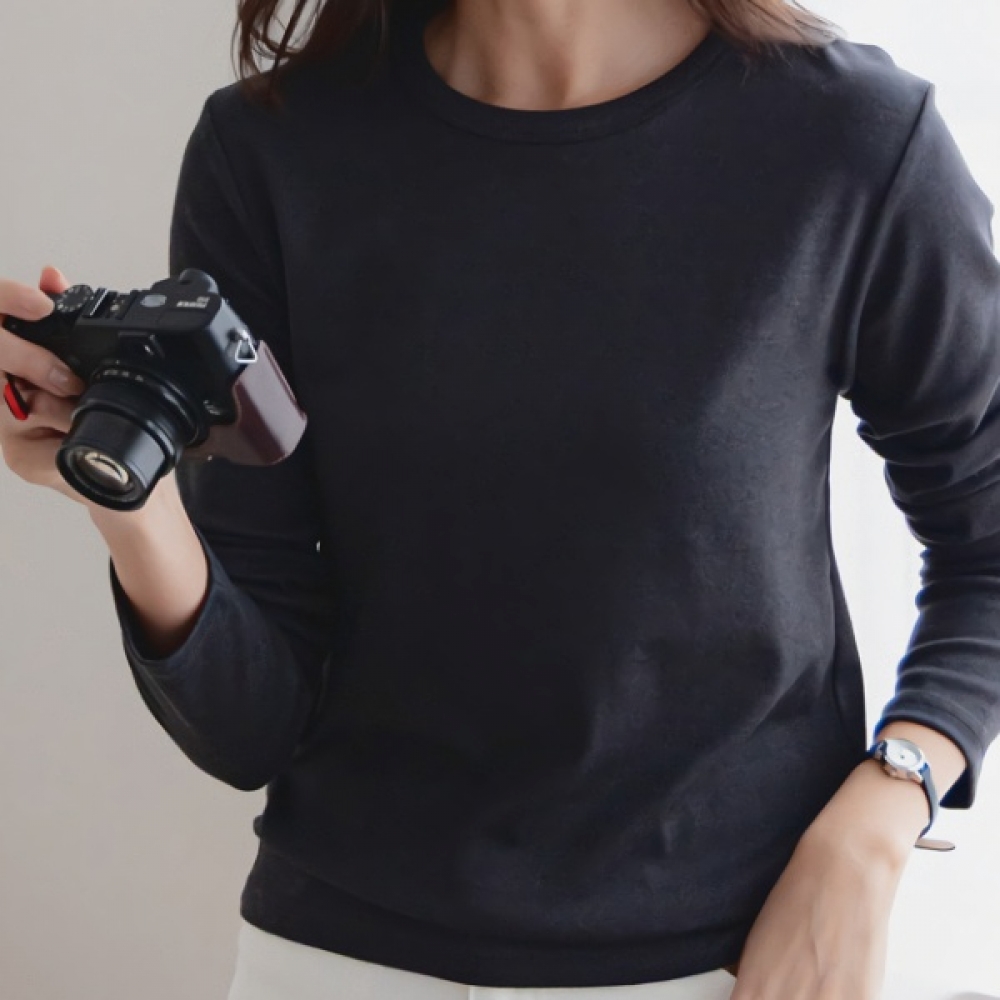 여성 미니 마들렌 라운드 기본 긴팔 티셔츠