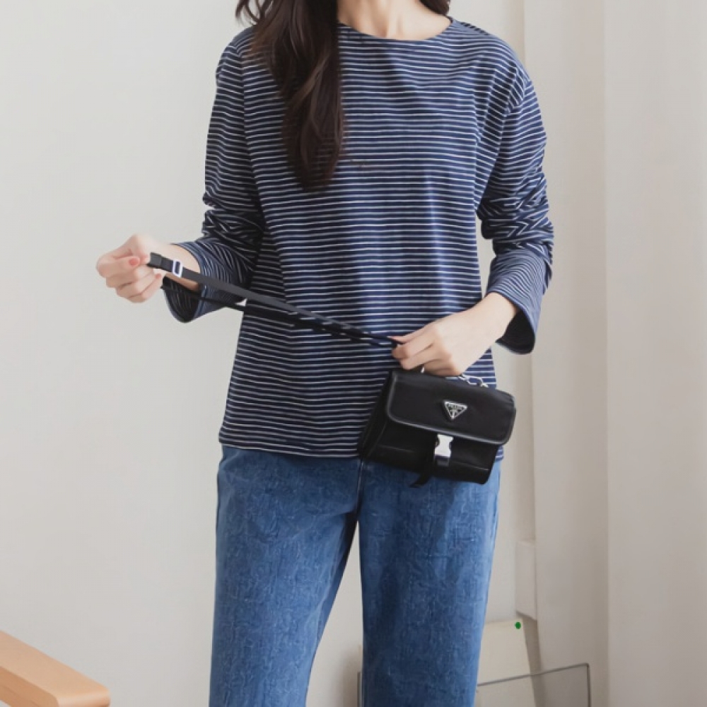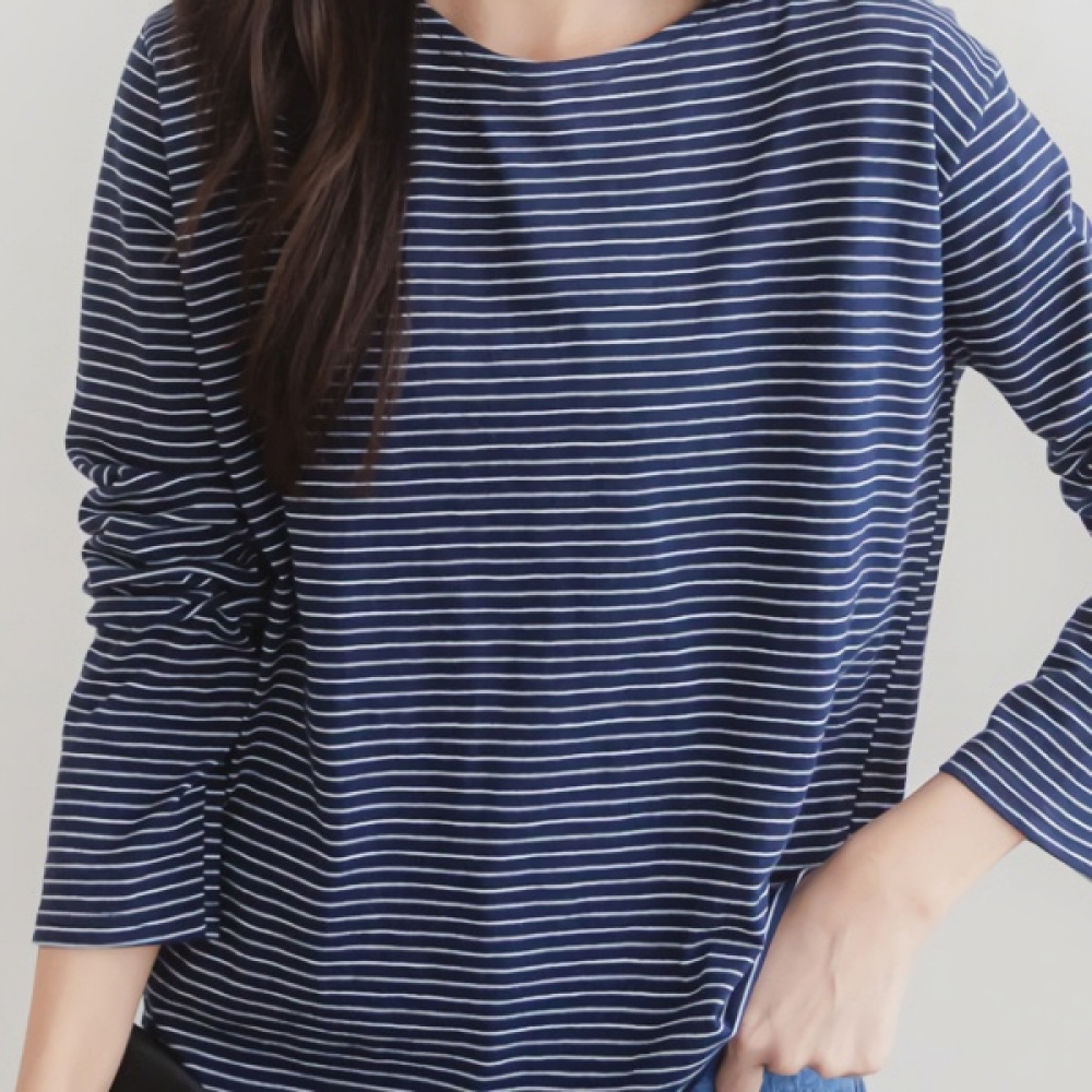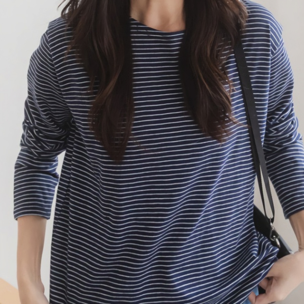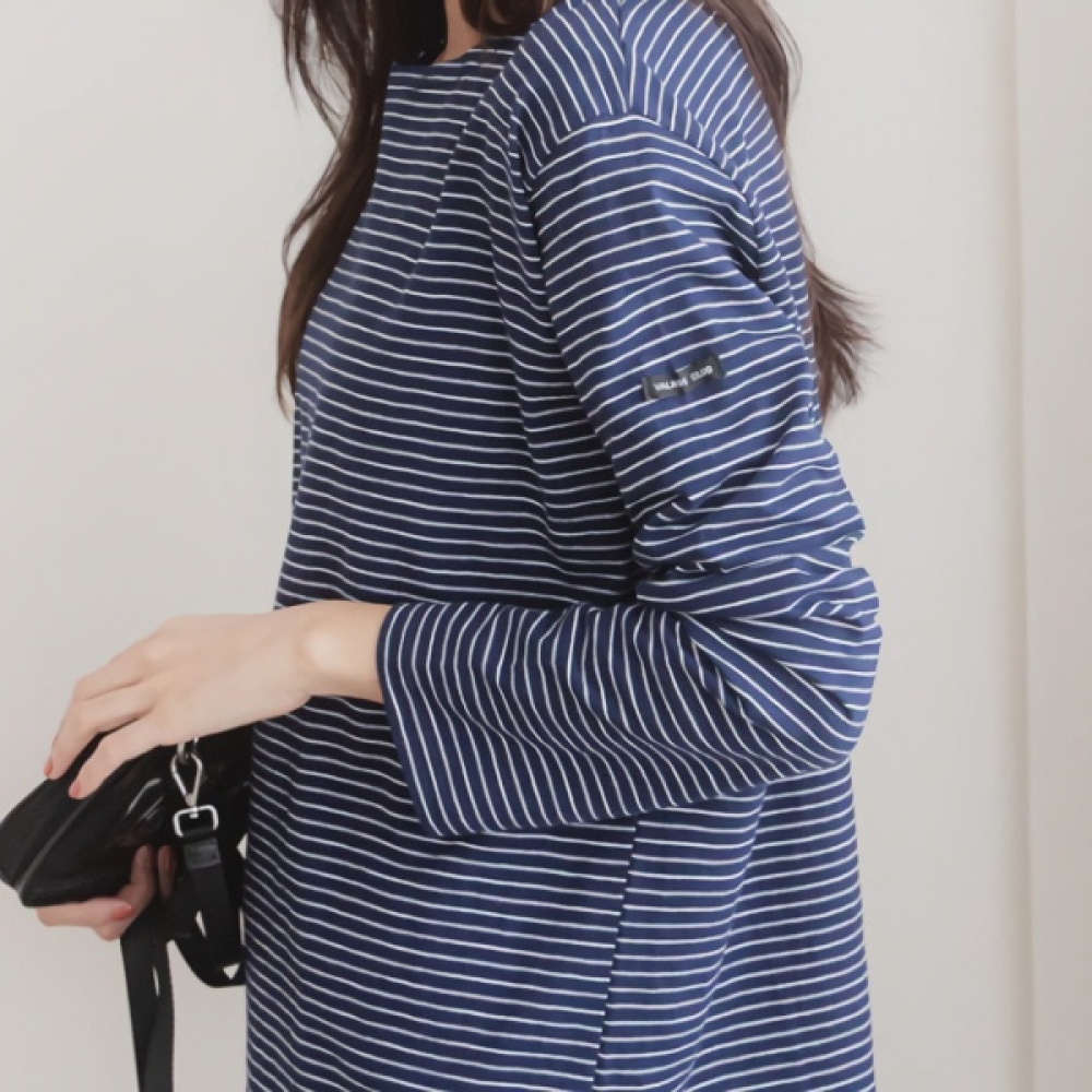 여성 콤마 스트라이프 라운드 기본 티셔츠
