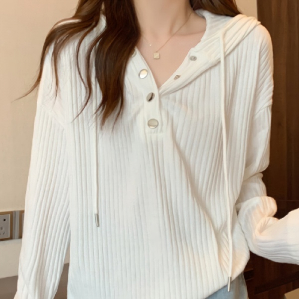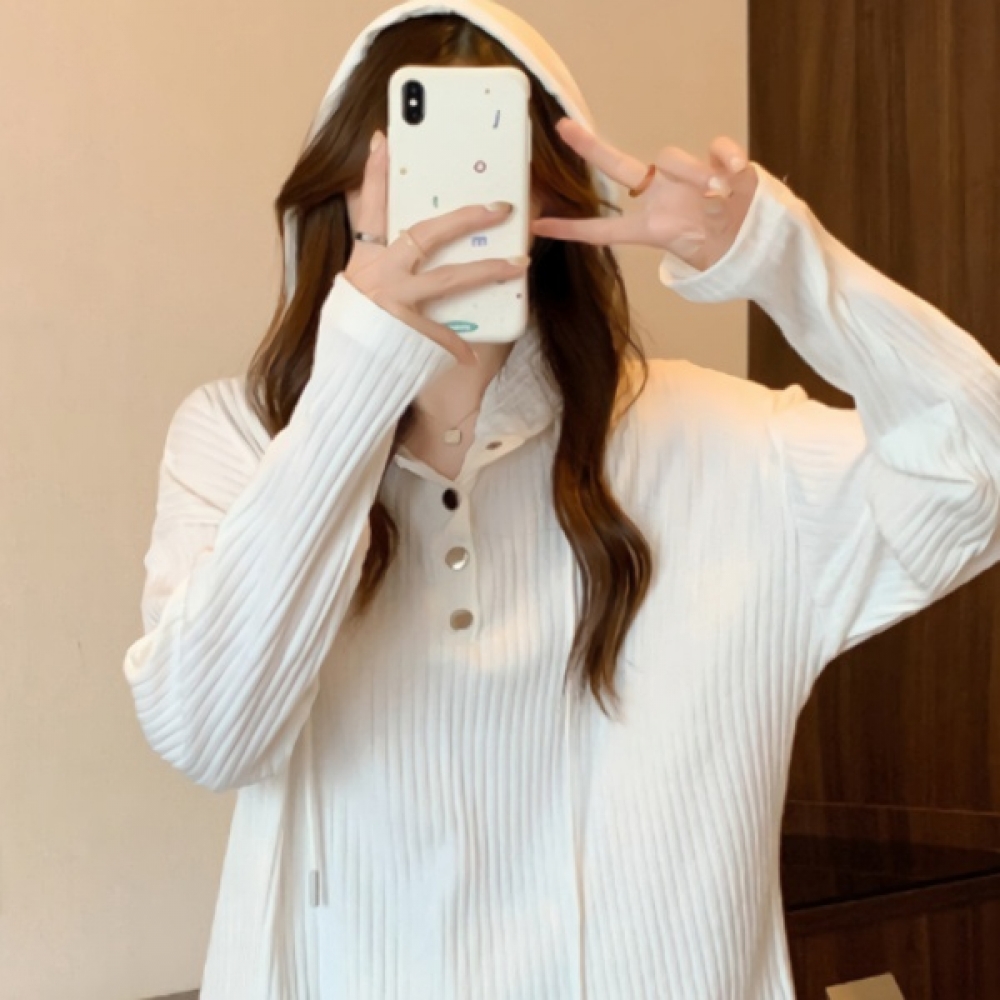 여성 겨울 골지 버튼 루즈핏 후드 티셔츠