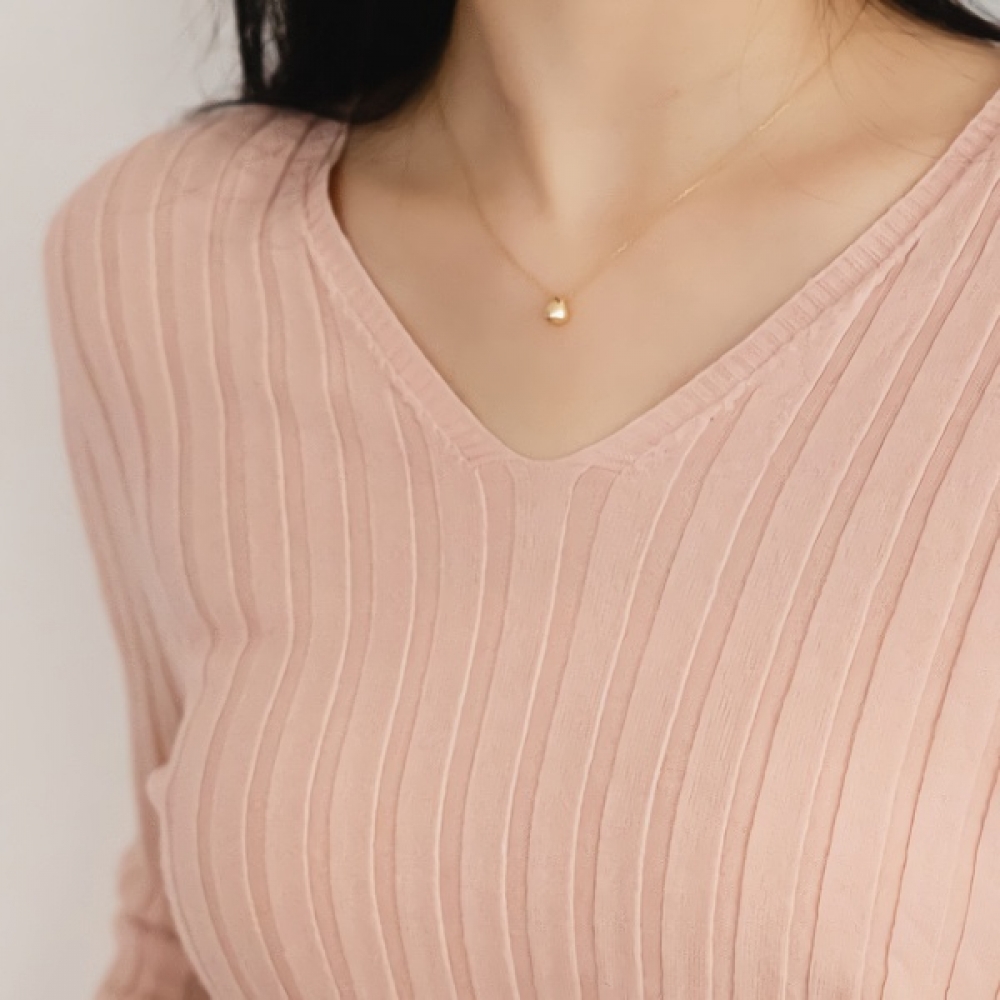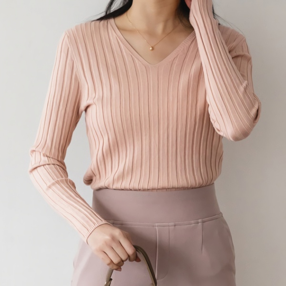 여성 가을 겨울 데일리 골지 브이넥 니트