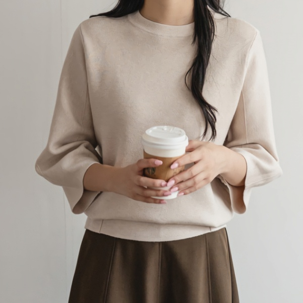 여성 겨울 핀턱 퍼프 소매 로맨틱 니트