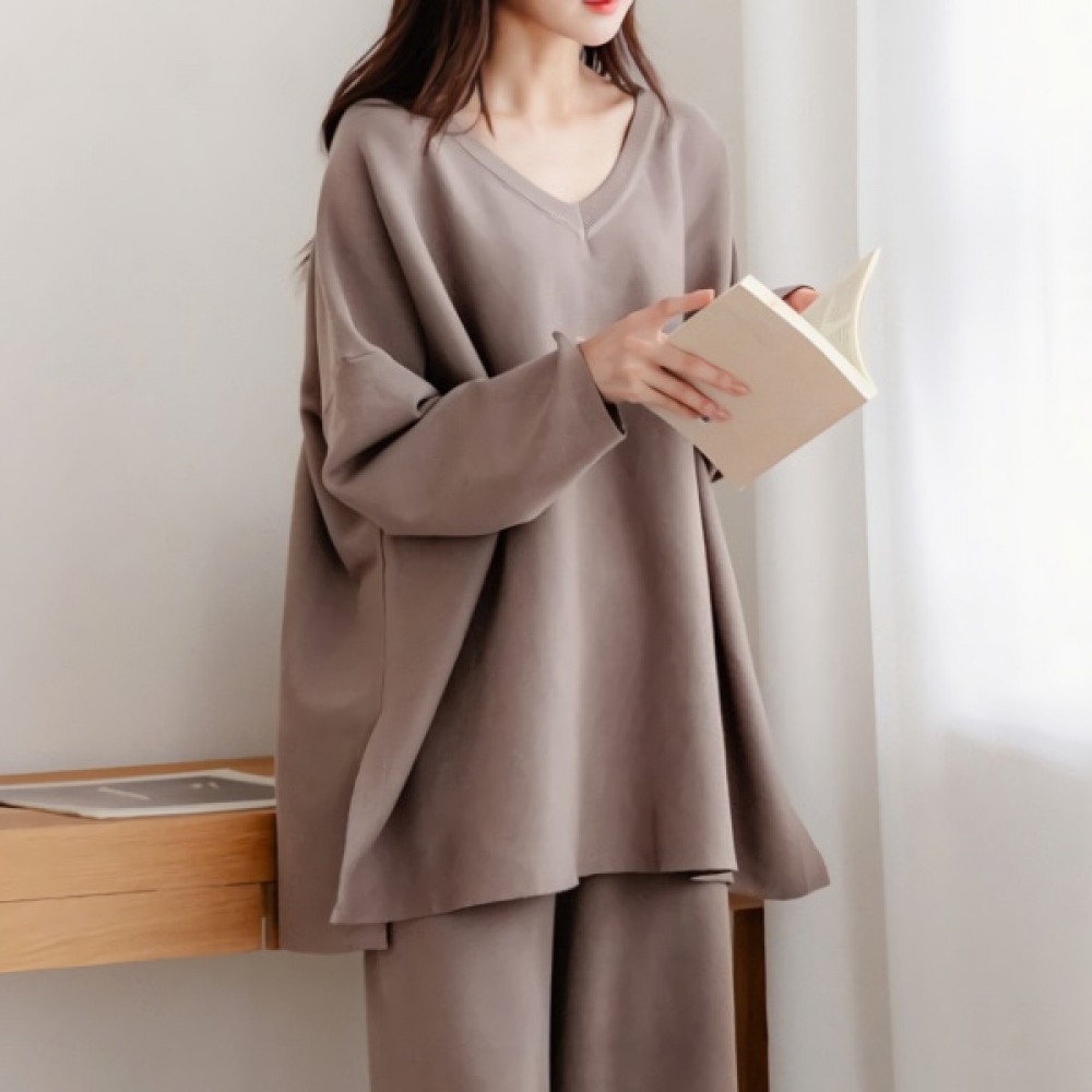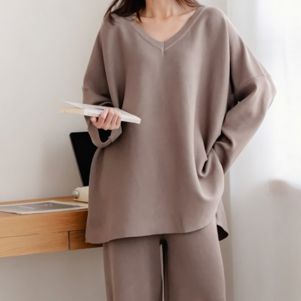 여성 겨울 브이넥 니트 밴딩 팬츠 세트