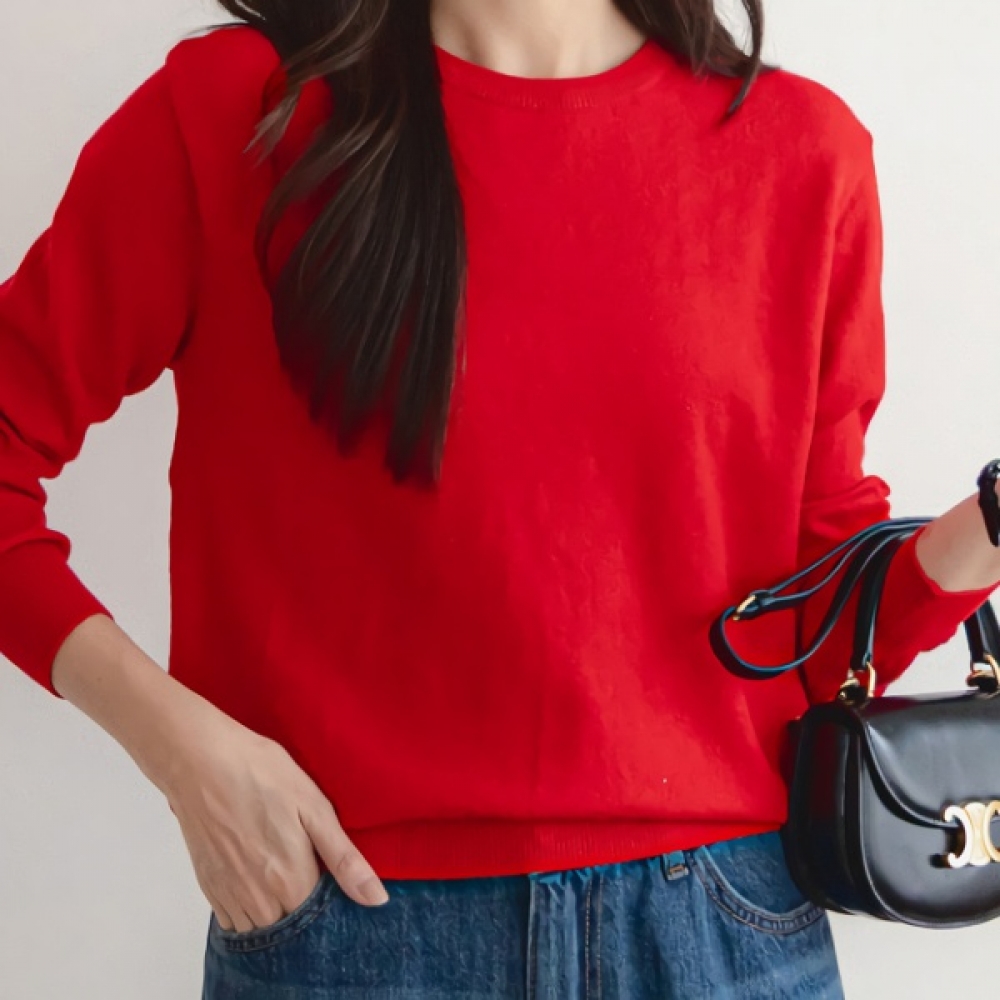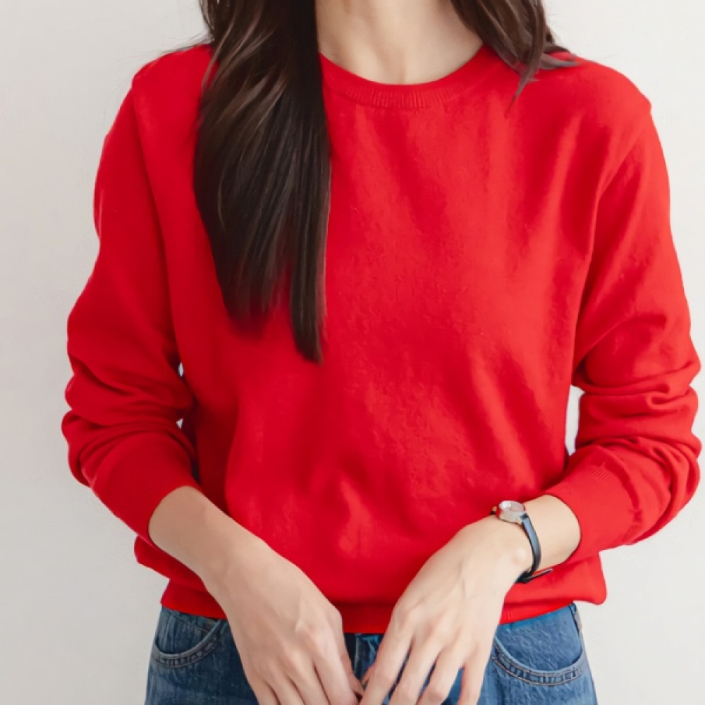 여성 코튼 로아 간절기 베이직 라운드 니트