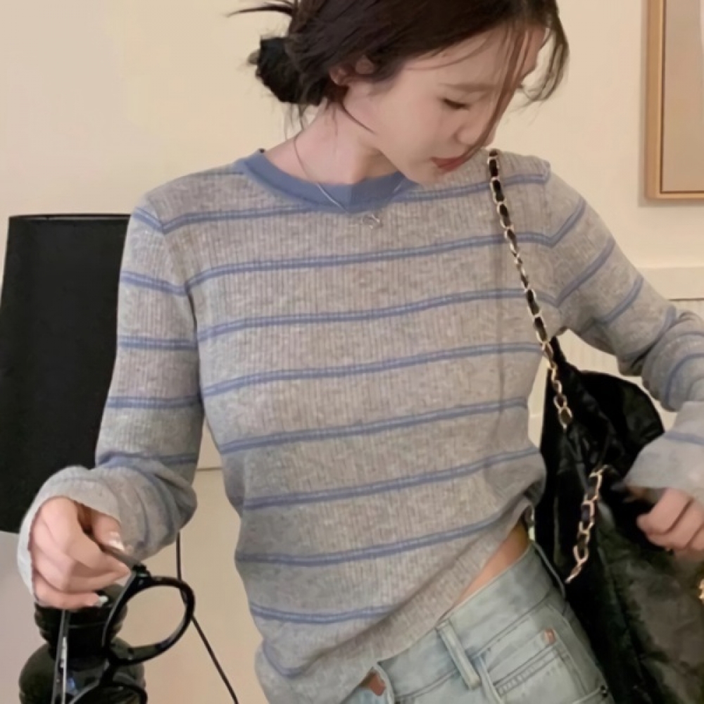 여성 겨울 소프트 스트라이프 니트 티셔츠