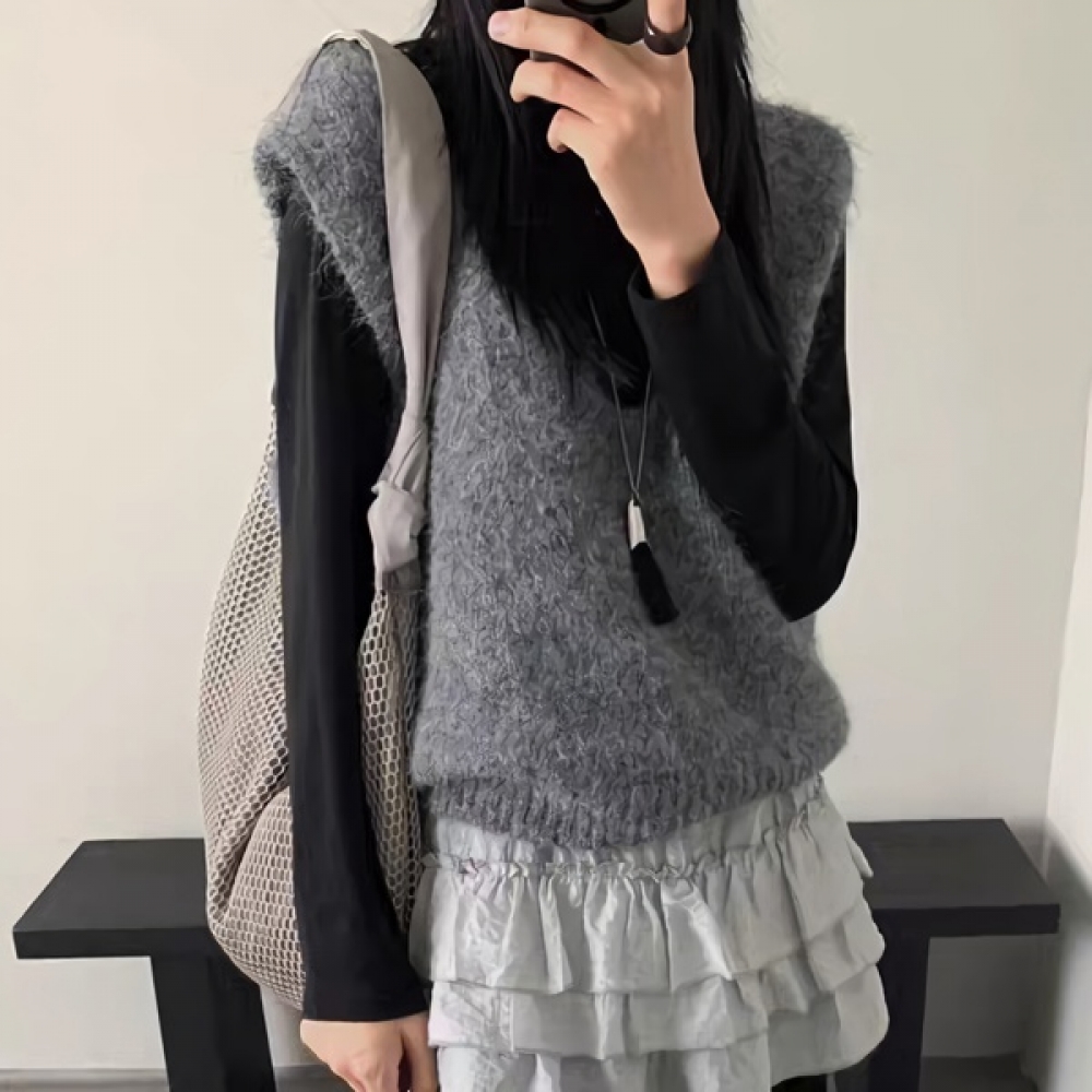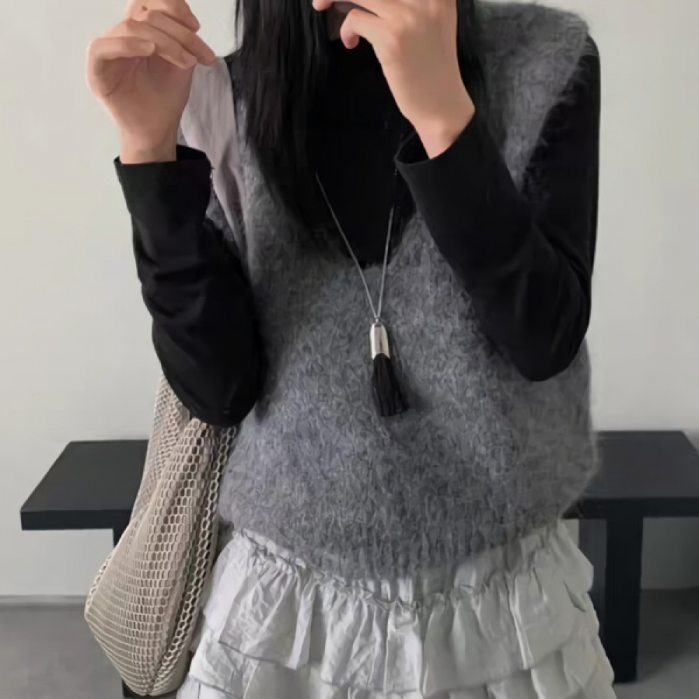 여성 가을 겨울 베이직 브이넥 조끼