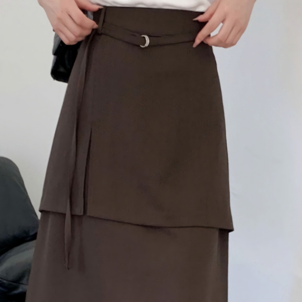 여성 A라인 이중 레이어드 벨트 롱 스커트