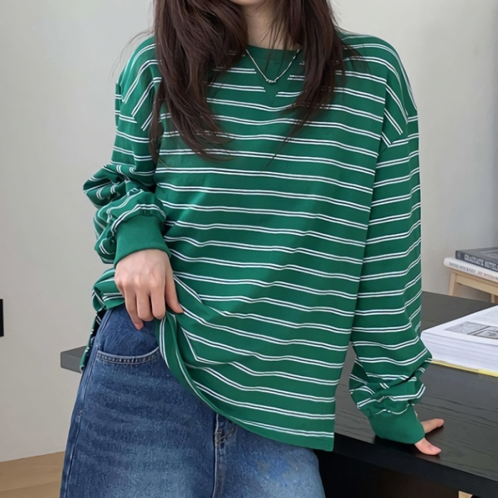 여성 루즈핏 긴팔 스트라이프 맨투맨