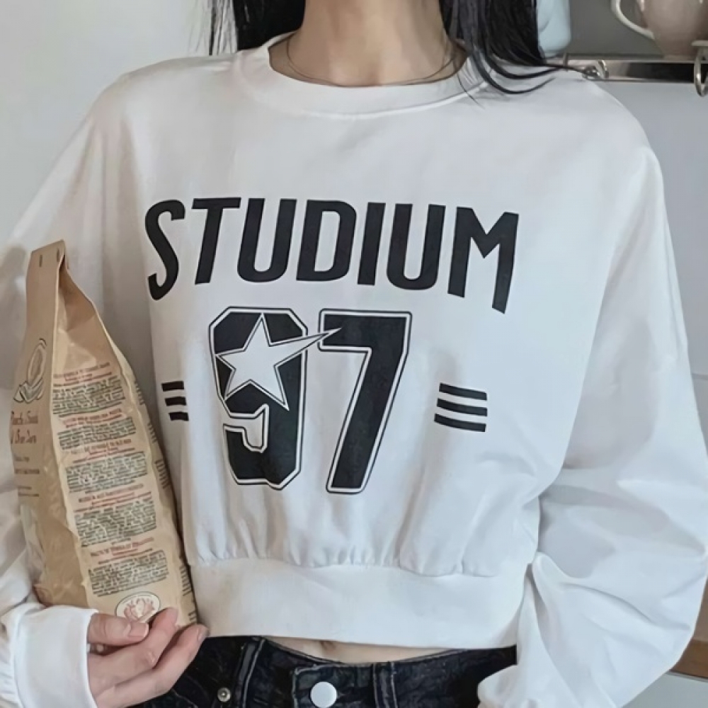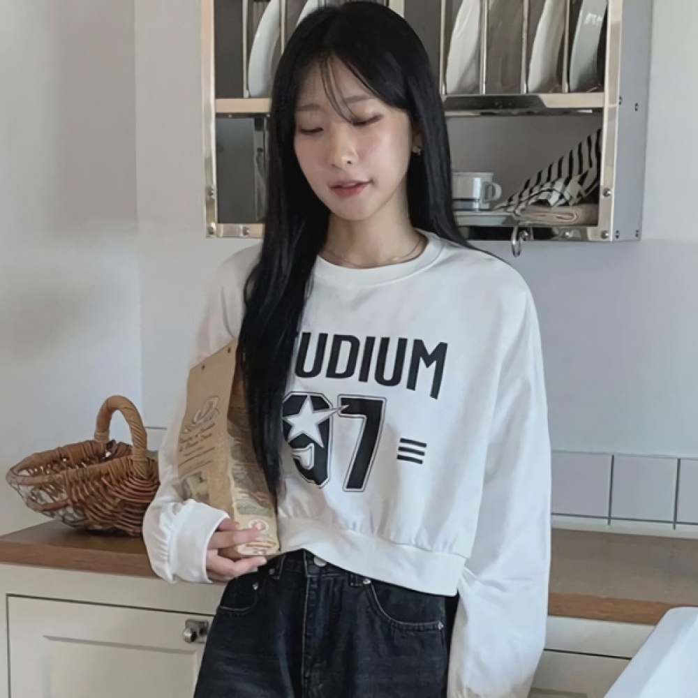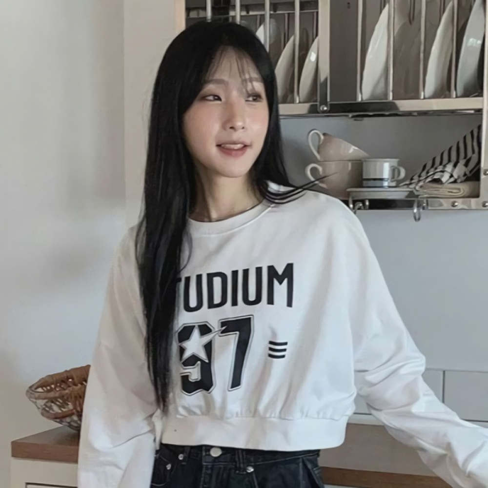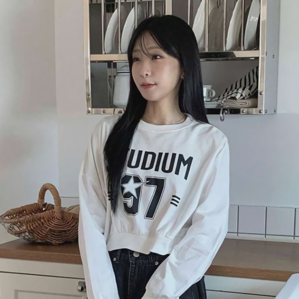 여성 가을 겨울 97프린팅 크롭 맨투맨
