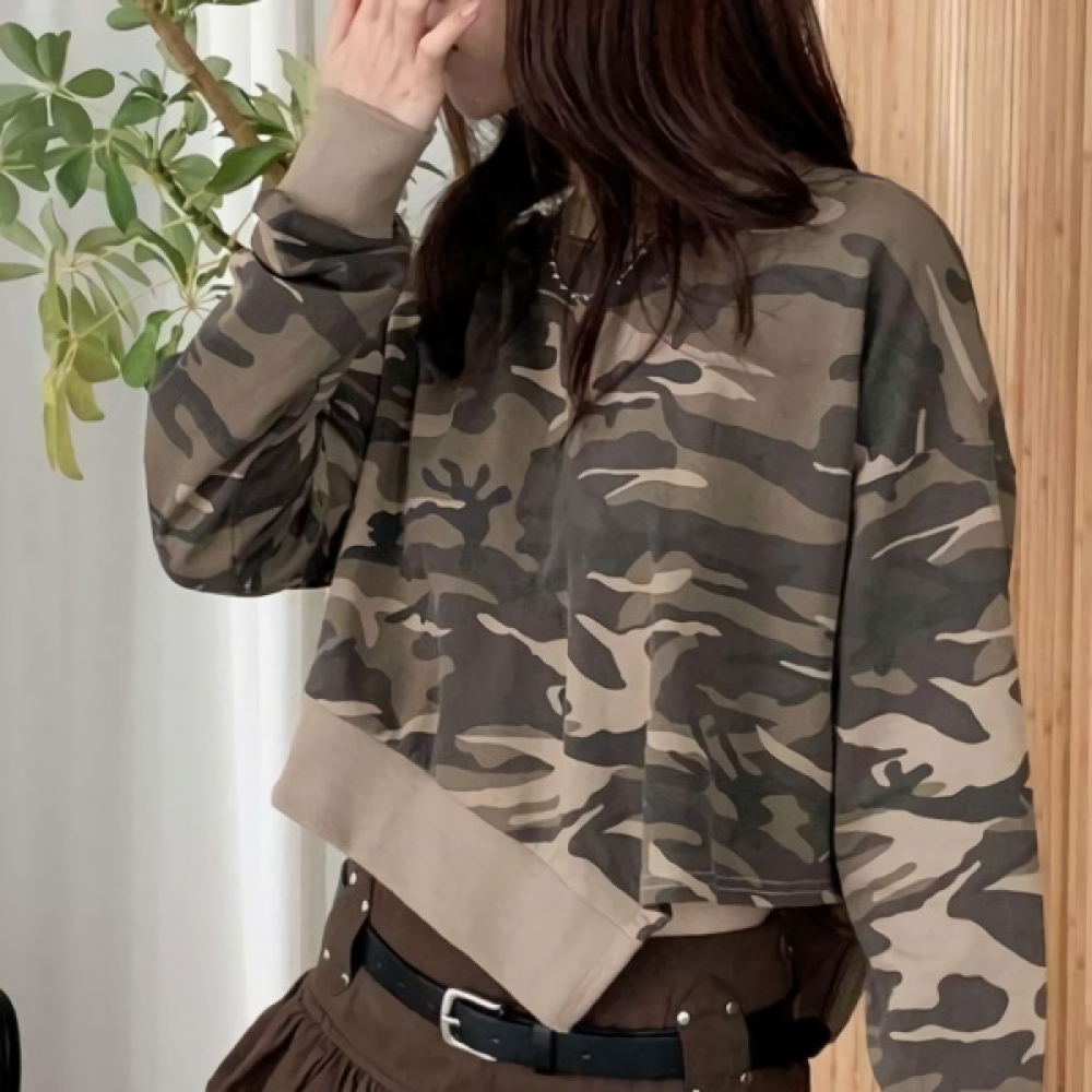 여성 겨울 카모플라쥬 언발 크롭 맨투맨