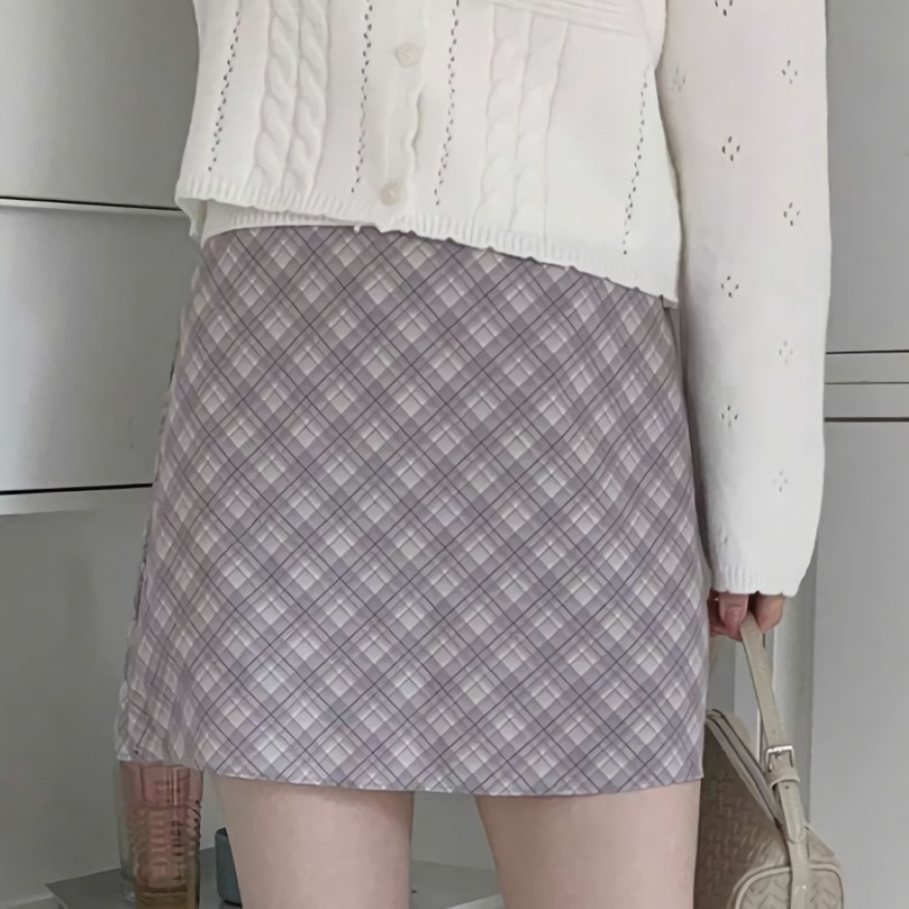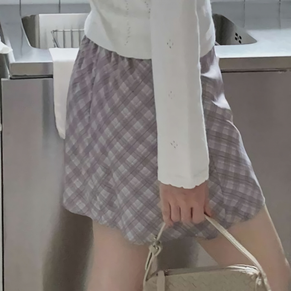 여성 페미닌 A라인 뒷밴딩 체크 미니스커트