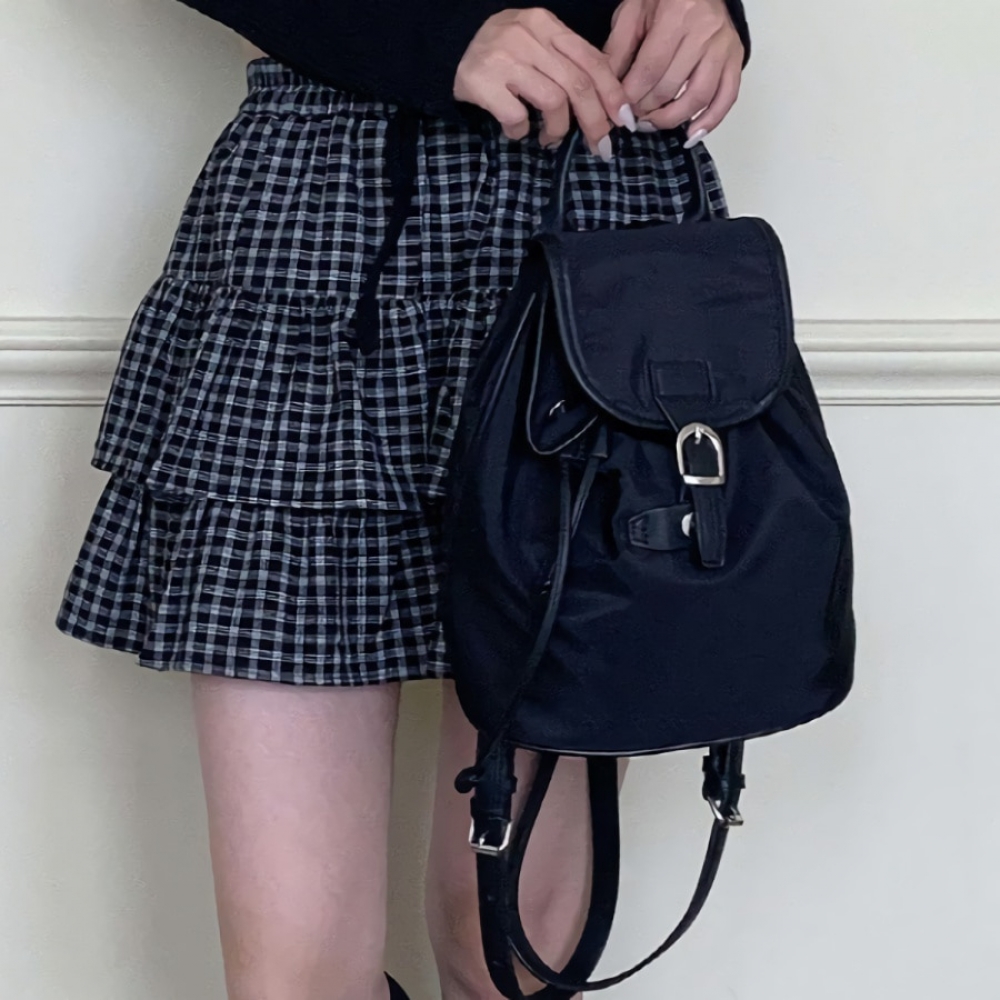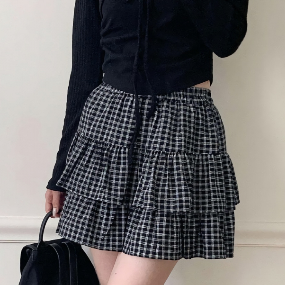 여성 겨울 캉캉 플레어 체크 미니 스커트