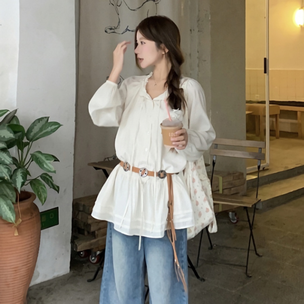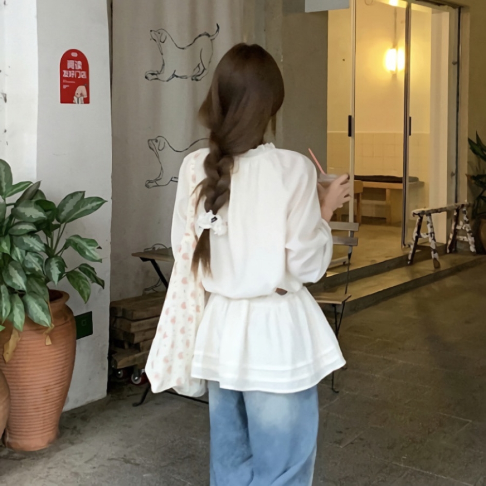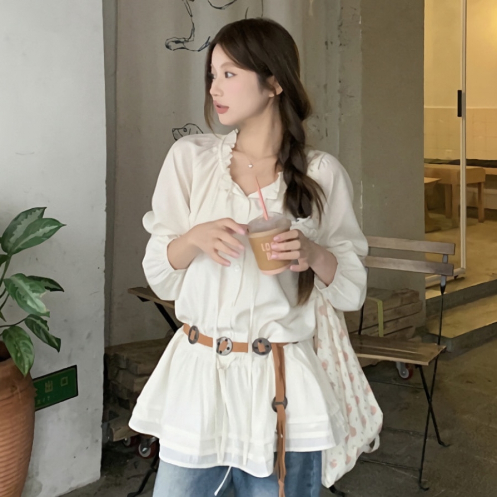 여성 가을 겨울 로로 스트랩 프릴 블라우스