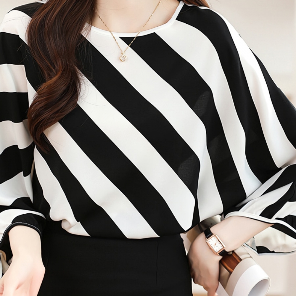 여성 루즈핏 스트라이프 실크 블라우스