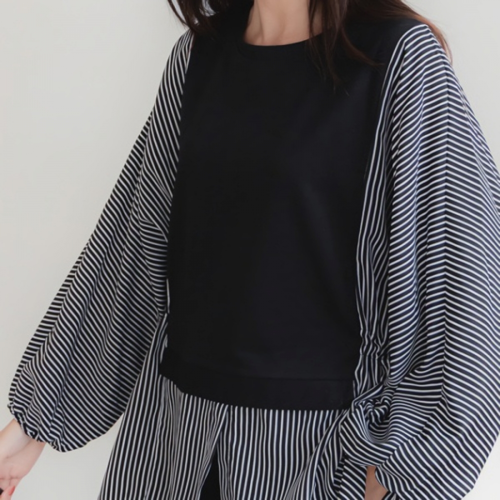 여성 찰리 배색 벌룬 티셔츠 블라우스