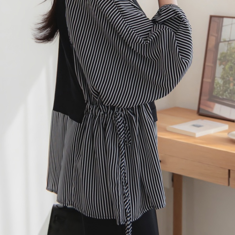 여성 루즈핏 스트라이프 실크 블라우스