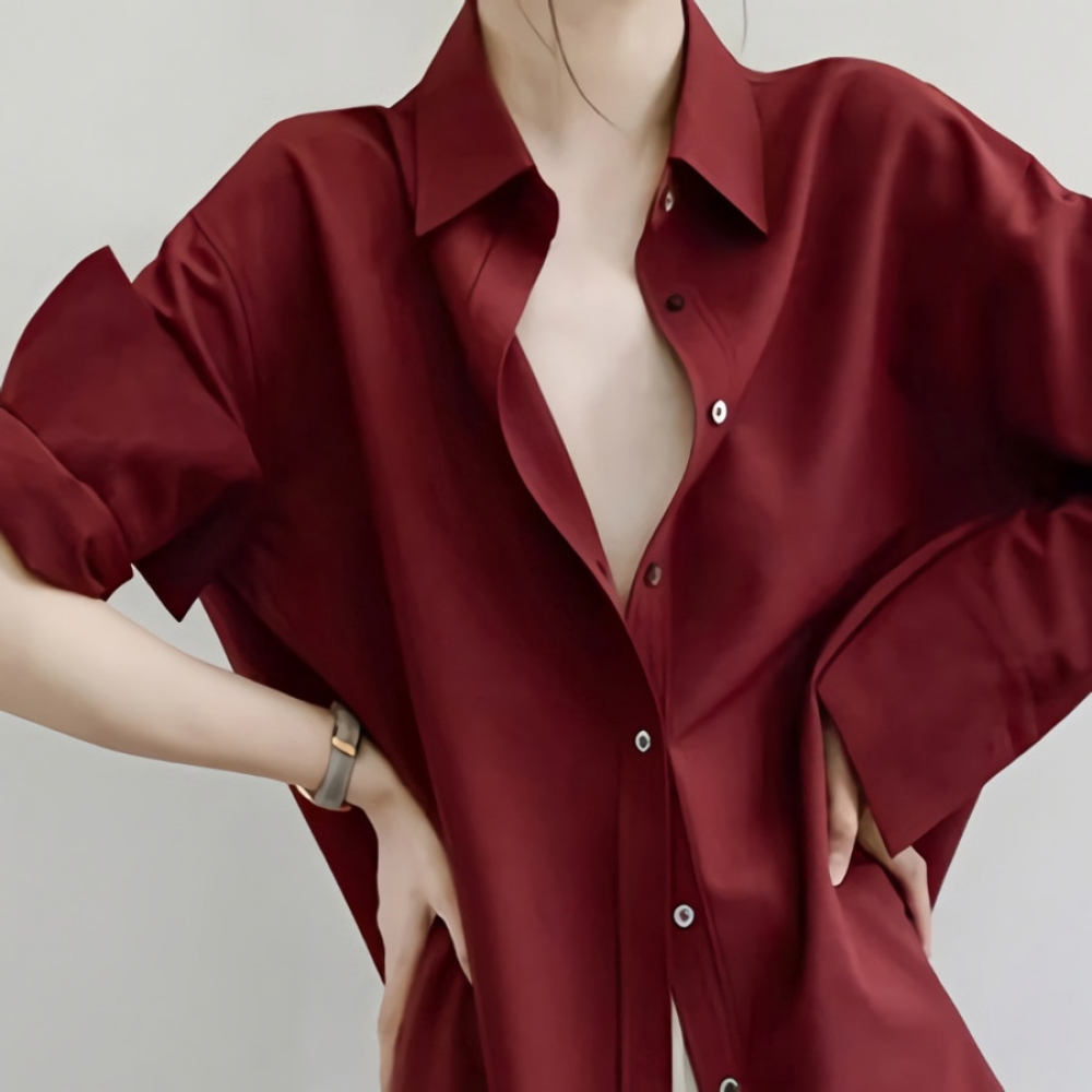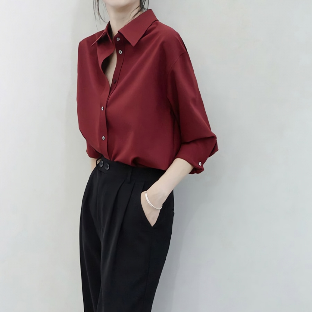 여성 가을 겨울 데일리 새틴 버건디 블라우스