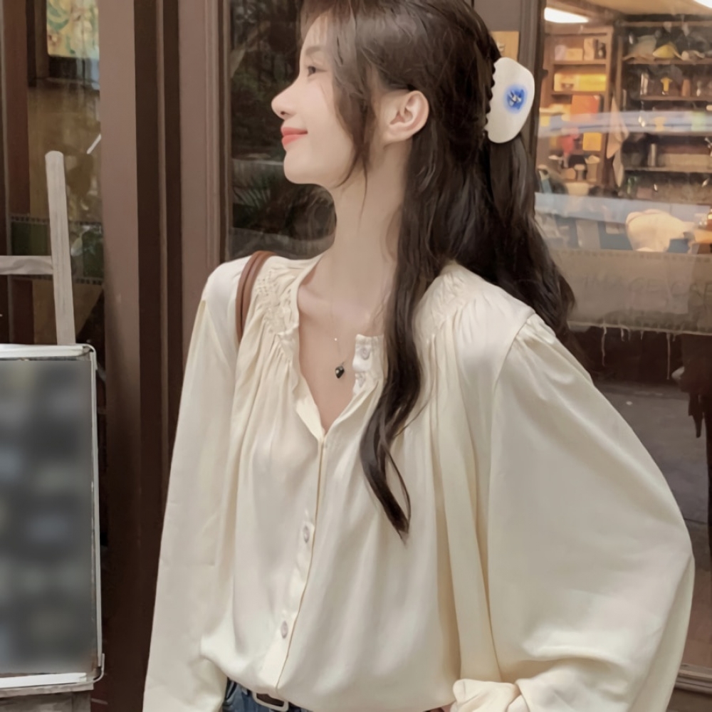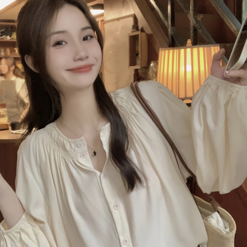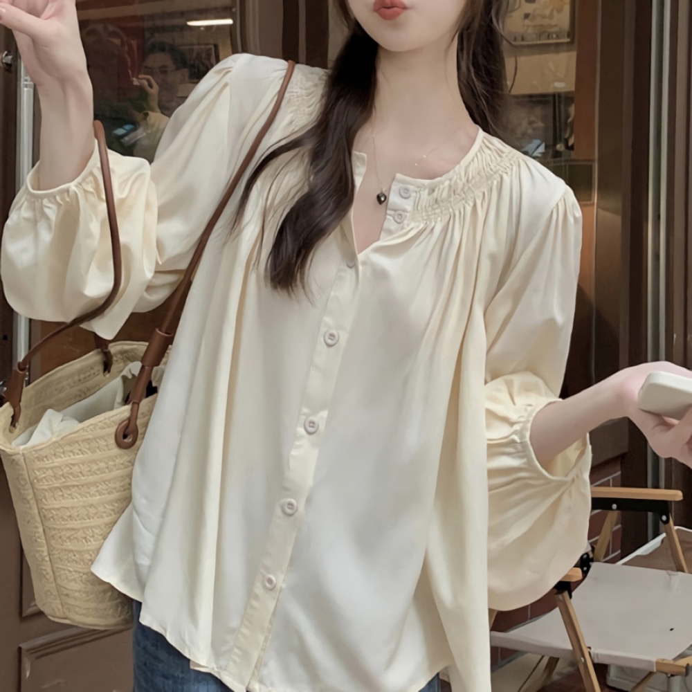 여성 가을 겨울 루즈핏 벌룬소매 블라우스