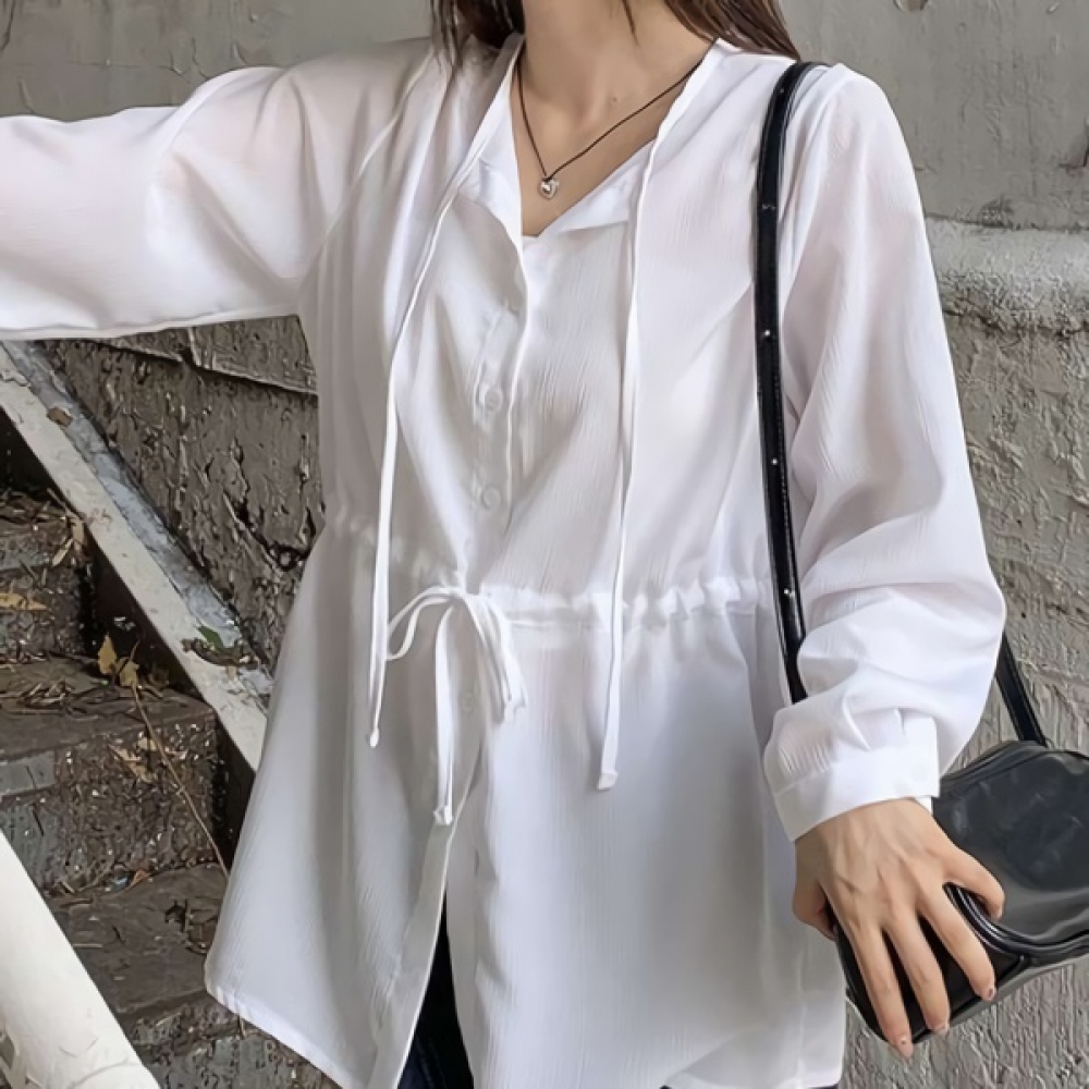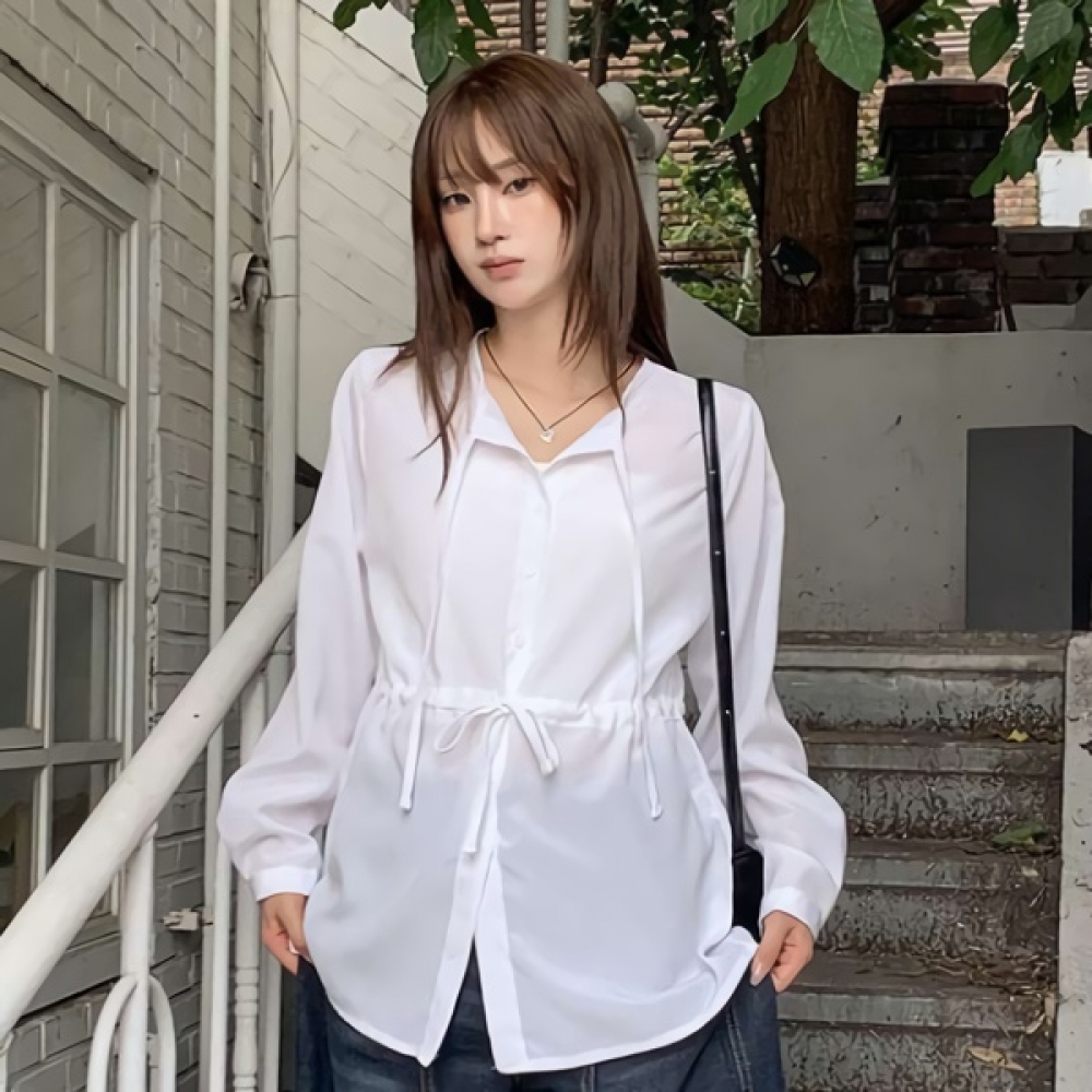 여성 겨울 오버핏 스트링 셔츠 블라우스