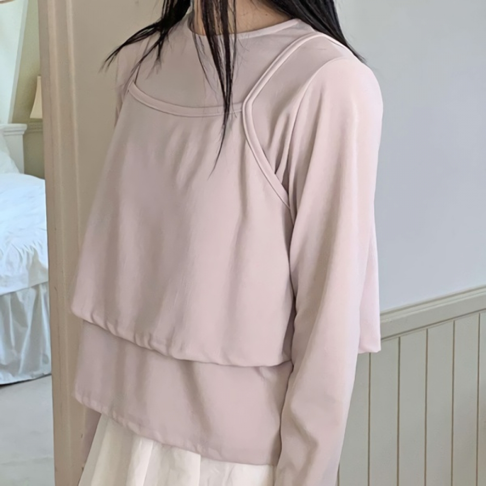 여성 나시 뷔스티에 크롭 블라우스 세트