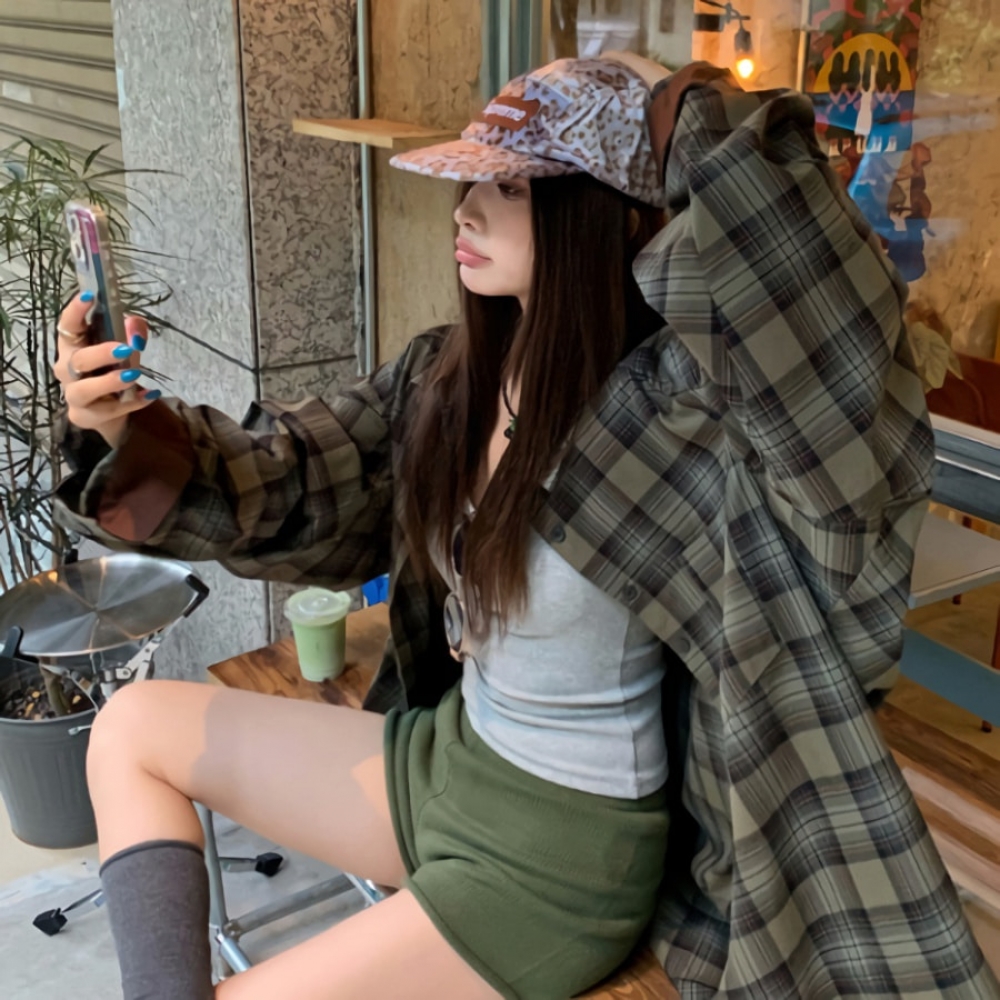 여성 가을 겨울 프림 오버핏 체크 셔츠 점퍼