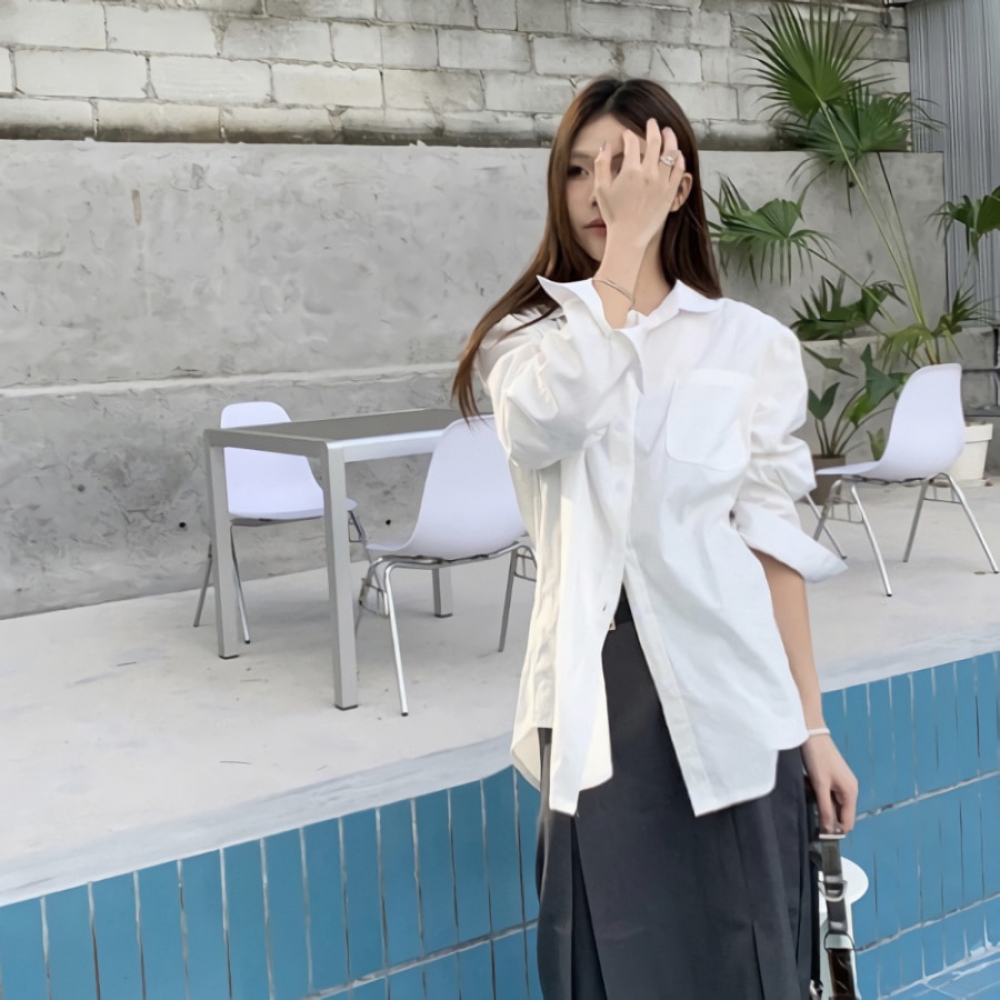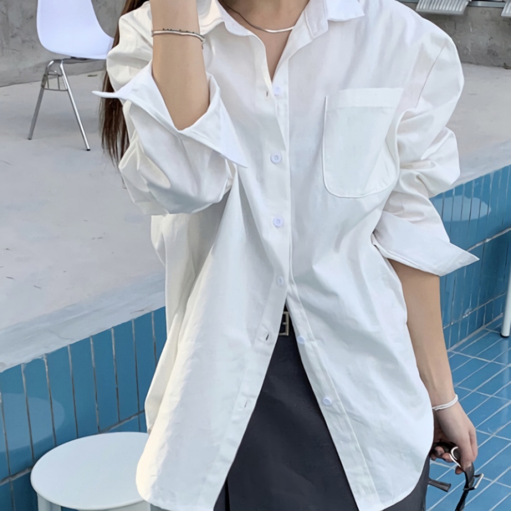 여성 가을 겨울 아키 베이직 루즈핏 셔츠